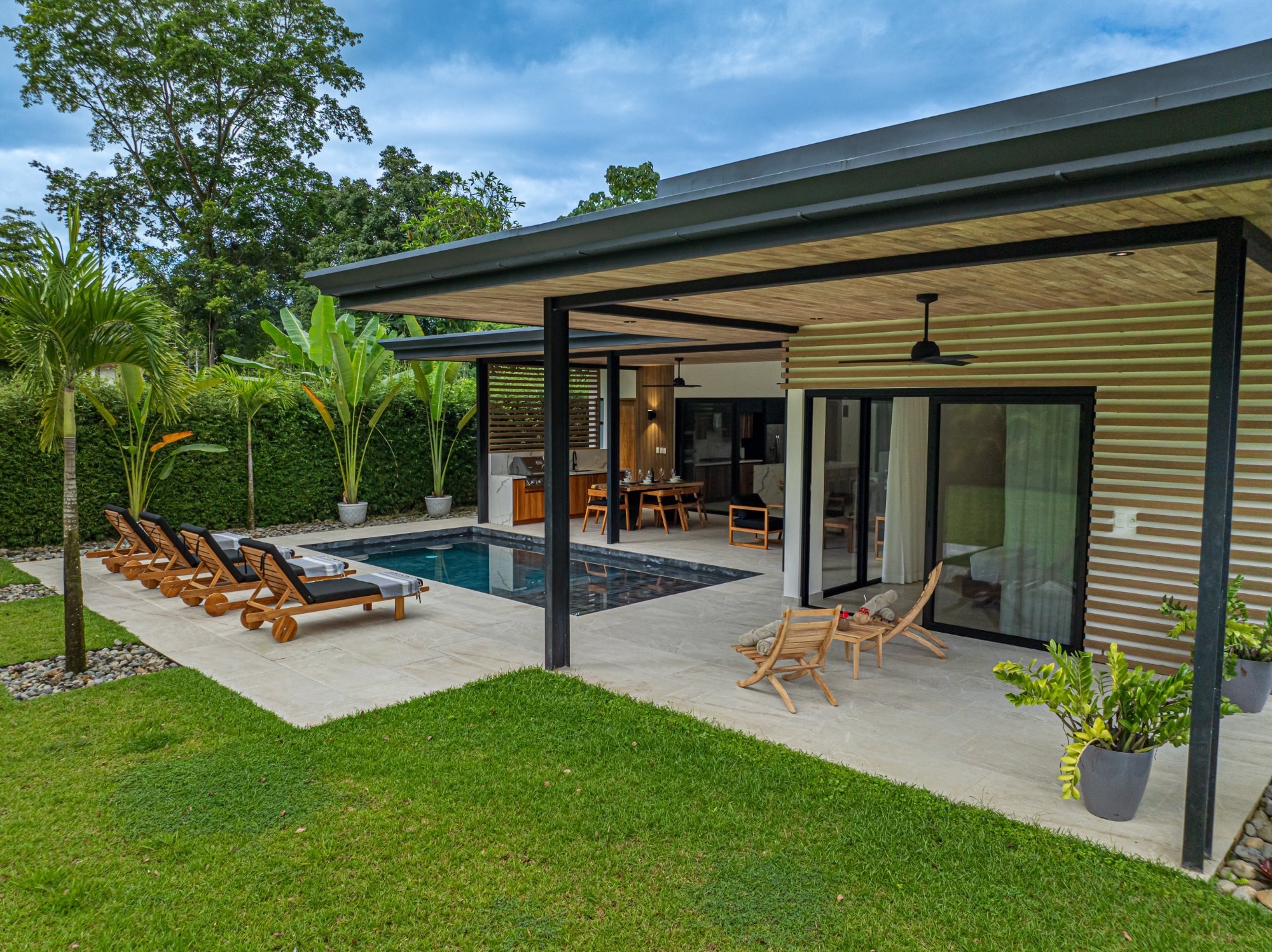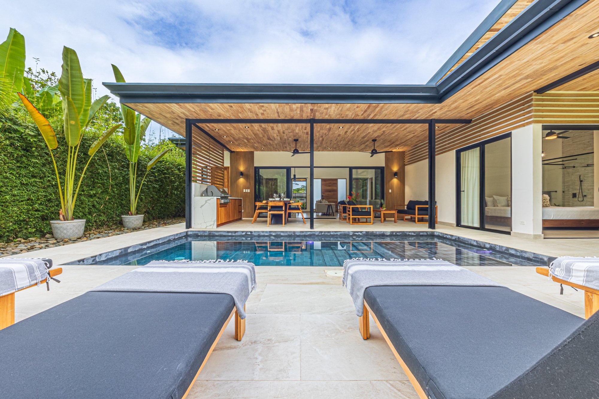 This modern 3-bedroom villa offers comfort, privacy & unbeatable locatio, just 1 minute from Uvita’s center and 4 minutes from Marino Ballena National Park and Playa Hermosa. Explore the famous Whale’s Tail beach, waterfalls & surf spots, then return to your private pool oasis. Best of all, easy access, no 4x4 required!
