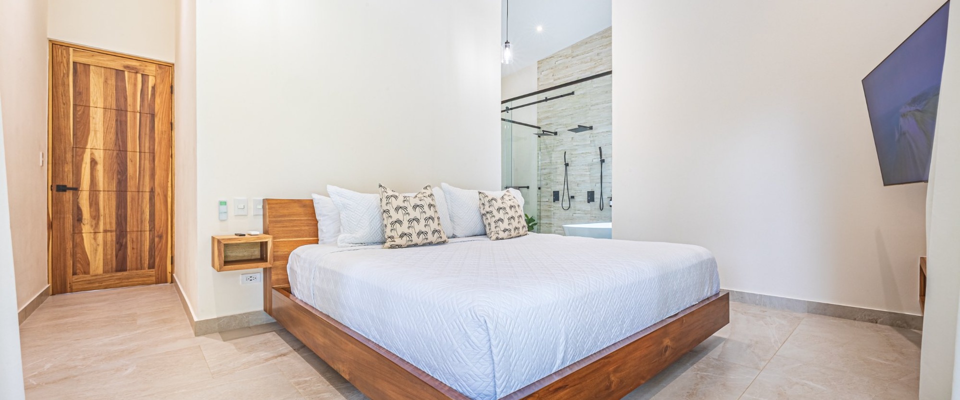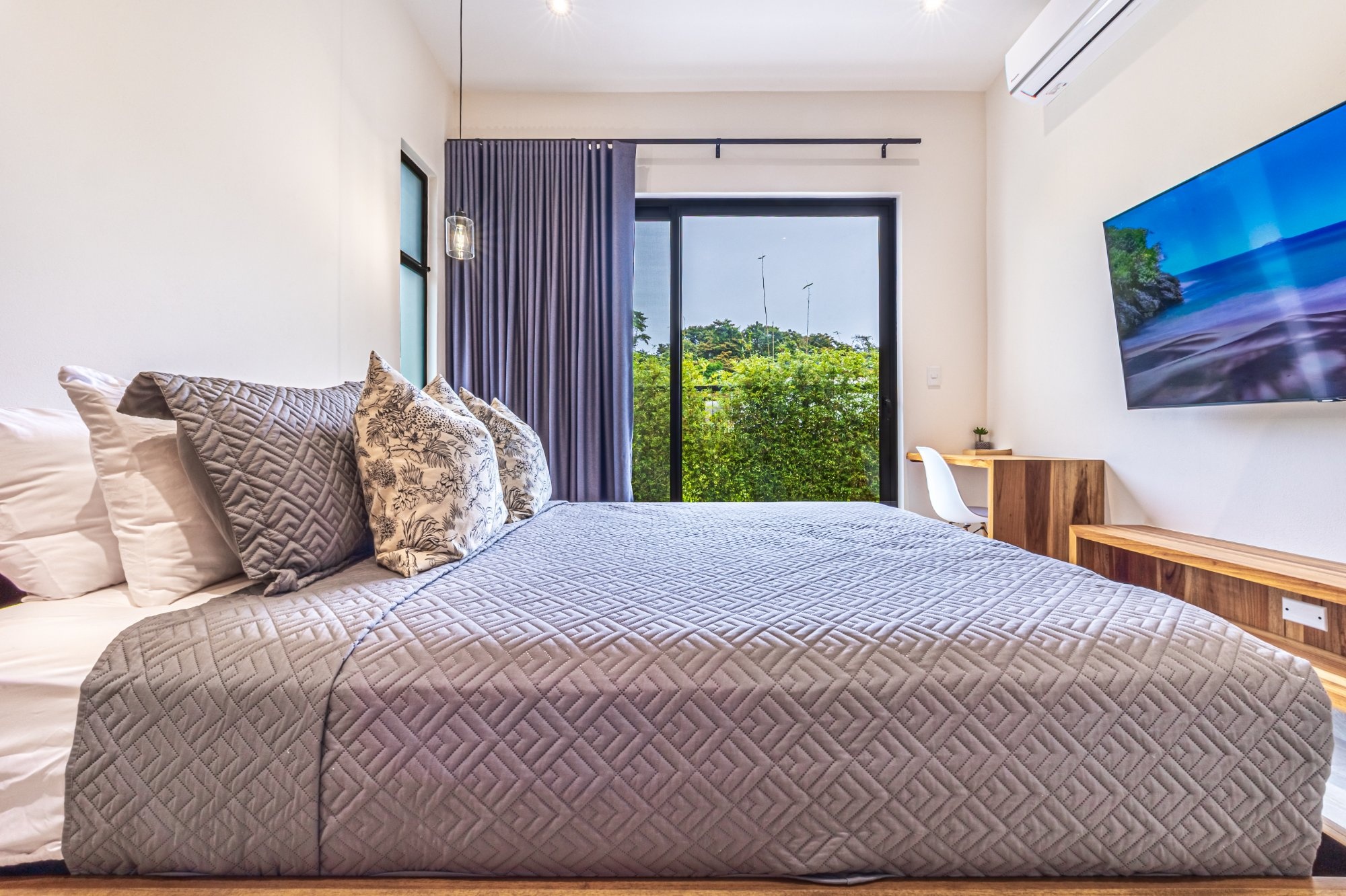 Stay just 1 minute from Uvita’s center & 4 minutes from Marino Ballena National Park & Hermosa Beach at Casa Ewa, a modern 3BR, 2.5-bath villa with private pool, A/C, Wi-Fi, full kitchen, laundry room & secure parking for up to 2 vehicles. The master suite has a king size bed, en-suite bath with double shower + bathtub, direct pool access & Smart TV. Two guest rooms have queen beds + Smart TVs. Perfect for families & groups!