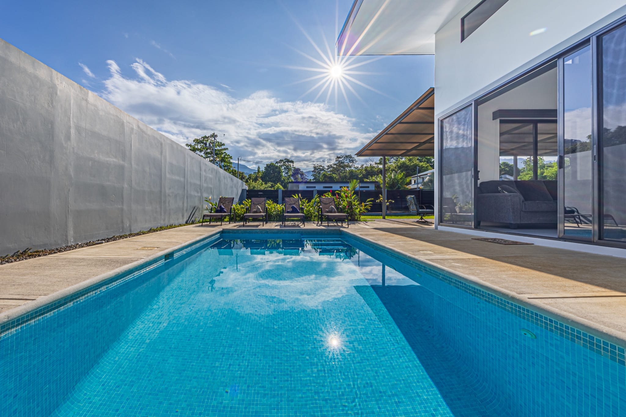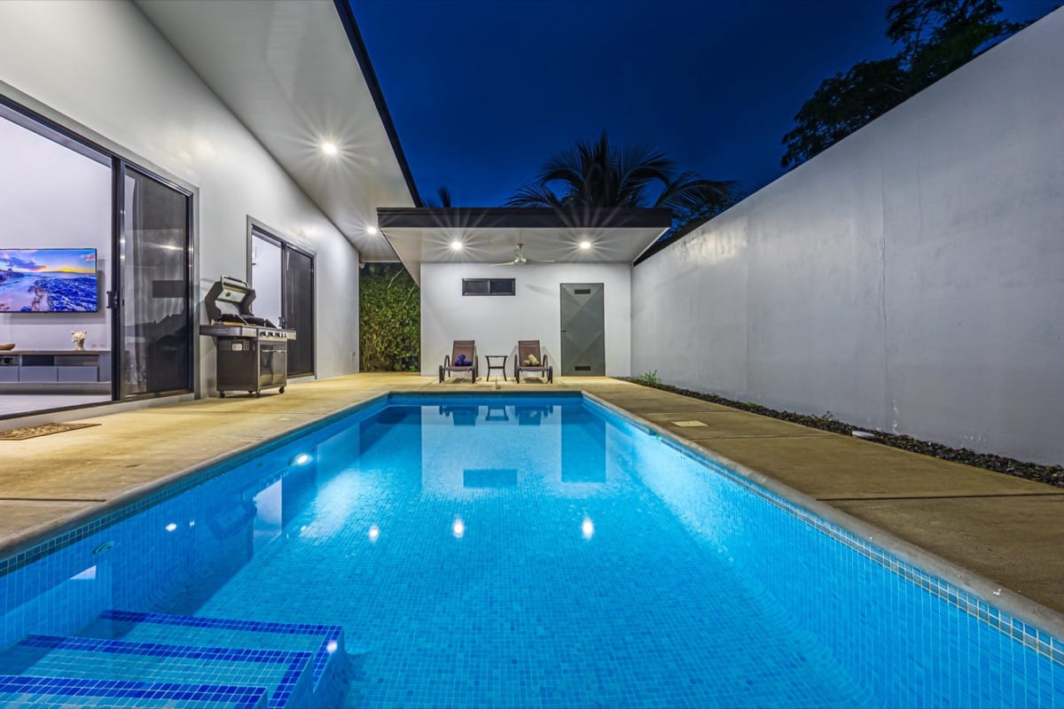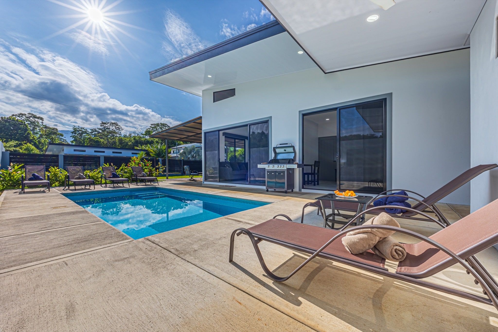 Discover Quetico, a brand-new, modern tropical villa designed to offer you comfort, style, and an unforgettable experience in Costa Rica’s vibrant South Pacific coast. Nestled on a private, fully fenced property, this villa provides the perfect combination of privacy, security, and convenience—just minutes from Marino Ballena National Park, Playa Hermosa, and downtown Uvita. Quetico features 3 spacious bedrooms, 3 full bathrooms, and comfortably accommodates up to 6 guests. Enjoy a private swimming pool, air conditioning in all bedrooms and the living room, high-speed Wi-Fi ideal for remote work, a fully equipped kitchen with brand-new appliances, outdoor BBQ area, a covered terrace with lounge space, and private parking for up to 4 vehicles.