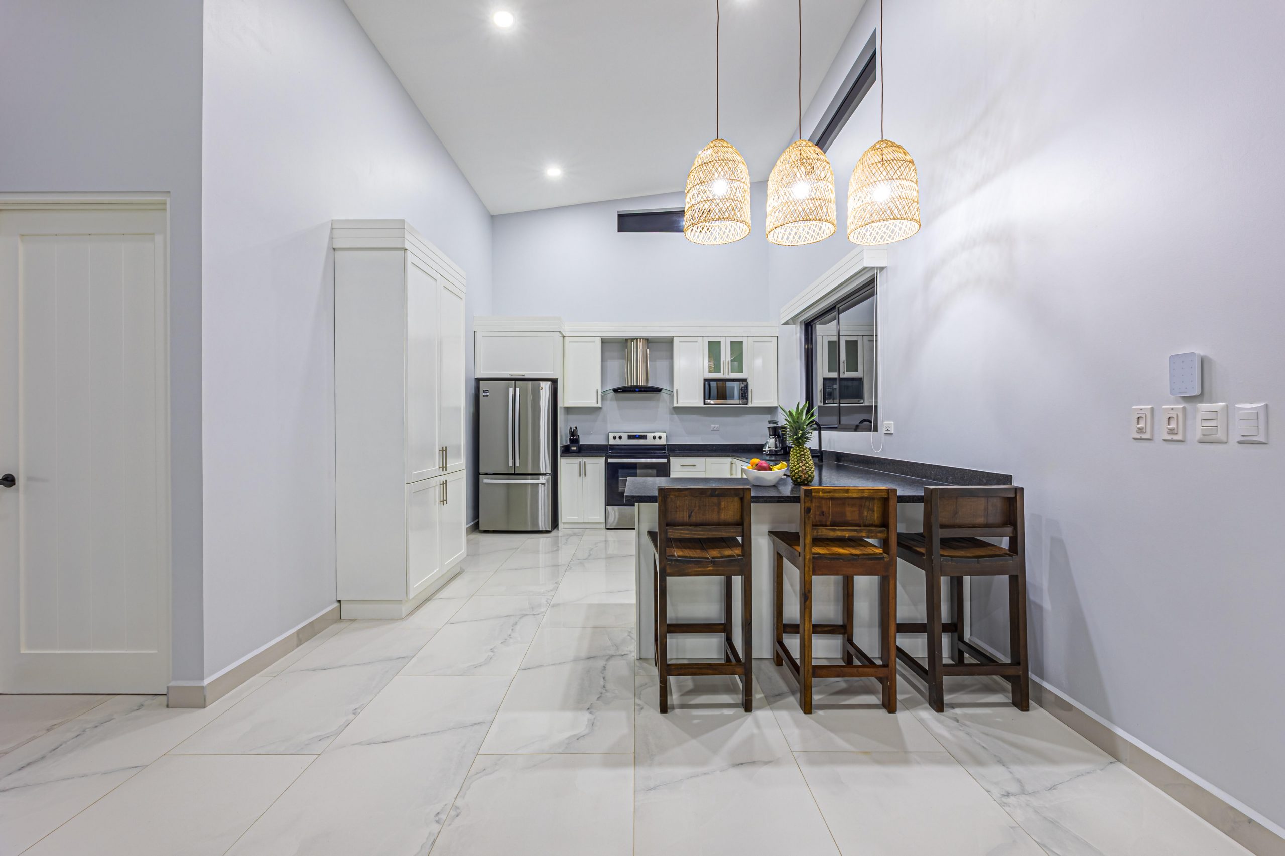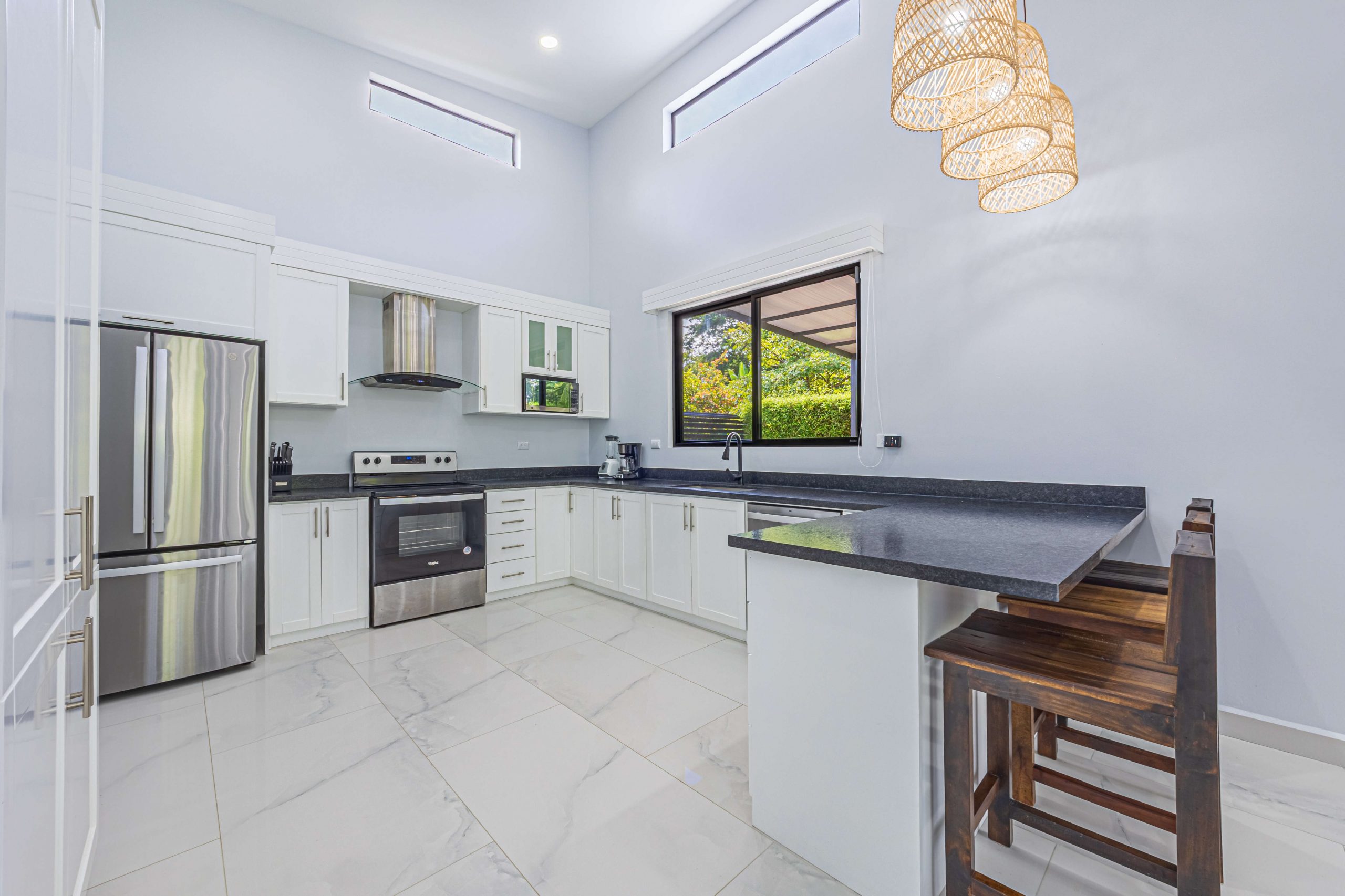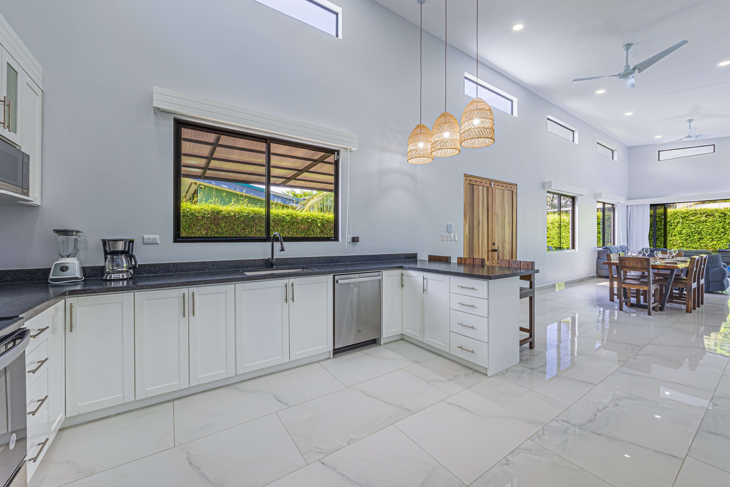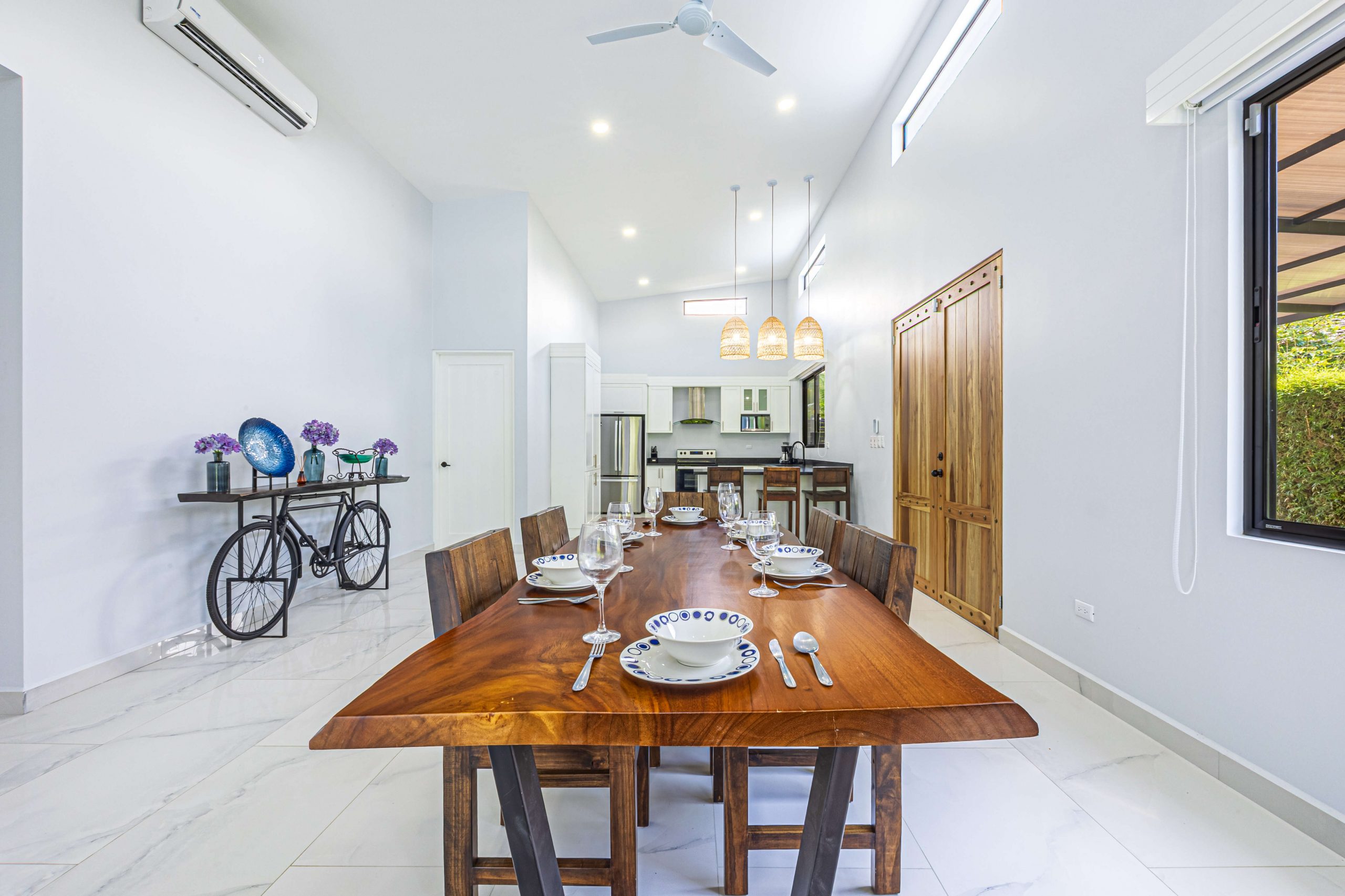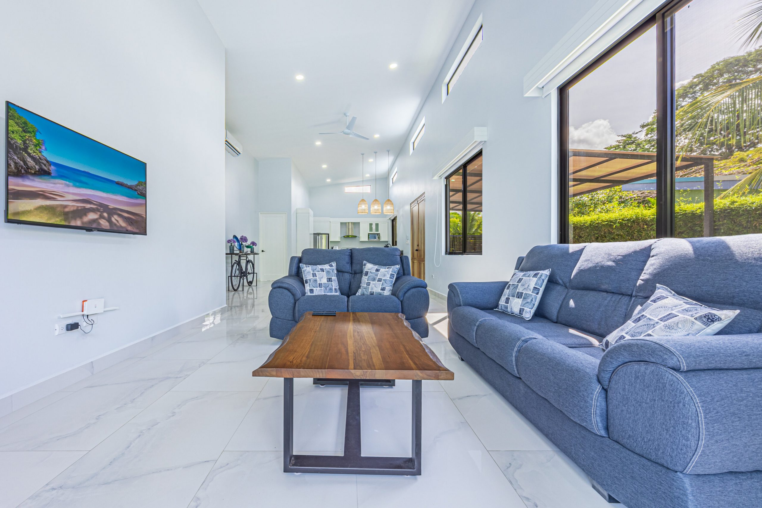 No 4x4 needed, close to restaurants and shops! Sunset Villa offers the perfect blend of comfort, privacy and location. This stylish 3-bedroom, 3-bath home sits just 4 minutes from Marino Ballena National Park and Uvita's most beautiful beaches, yet feels like a peaceful retreat. The villa features a private pool, high ceilings, spacious kitchen and living room, and a modern open-concept design. Each bedroom has A/C and a Smart TV, as does the living room. You'll enjoy a fully equipped kitchen, fast Wi-Fi, and a cozy outdoor space with seating and garden views—perfect for your morning coffee or sunset cocktails.
