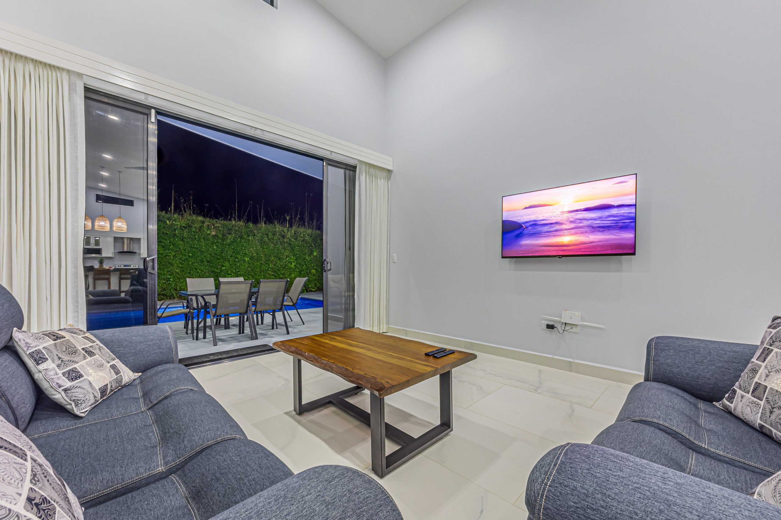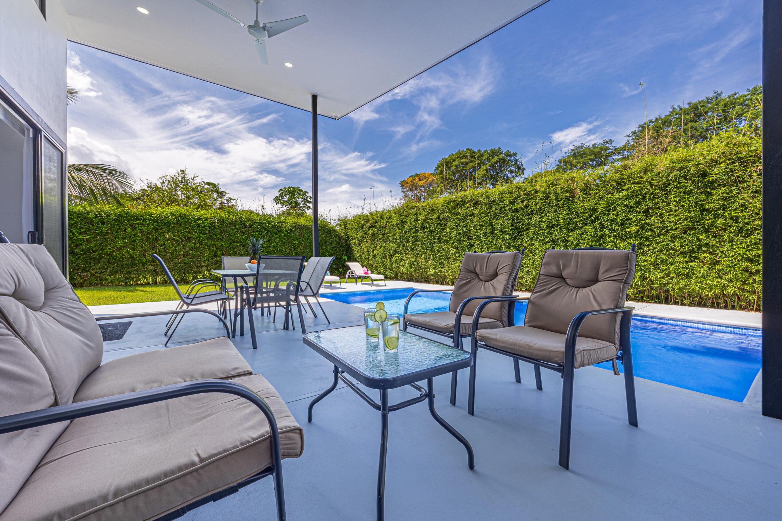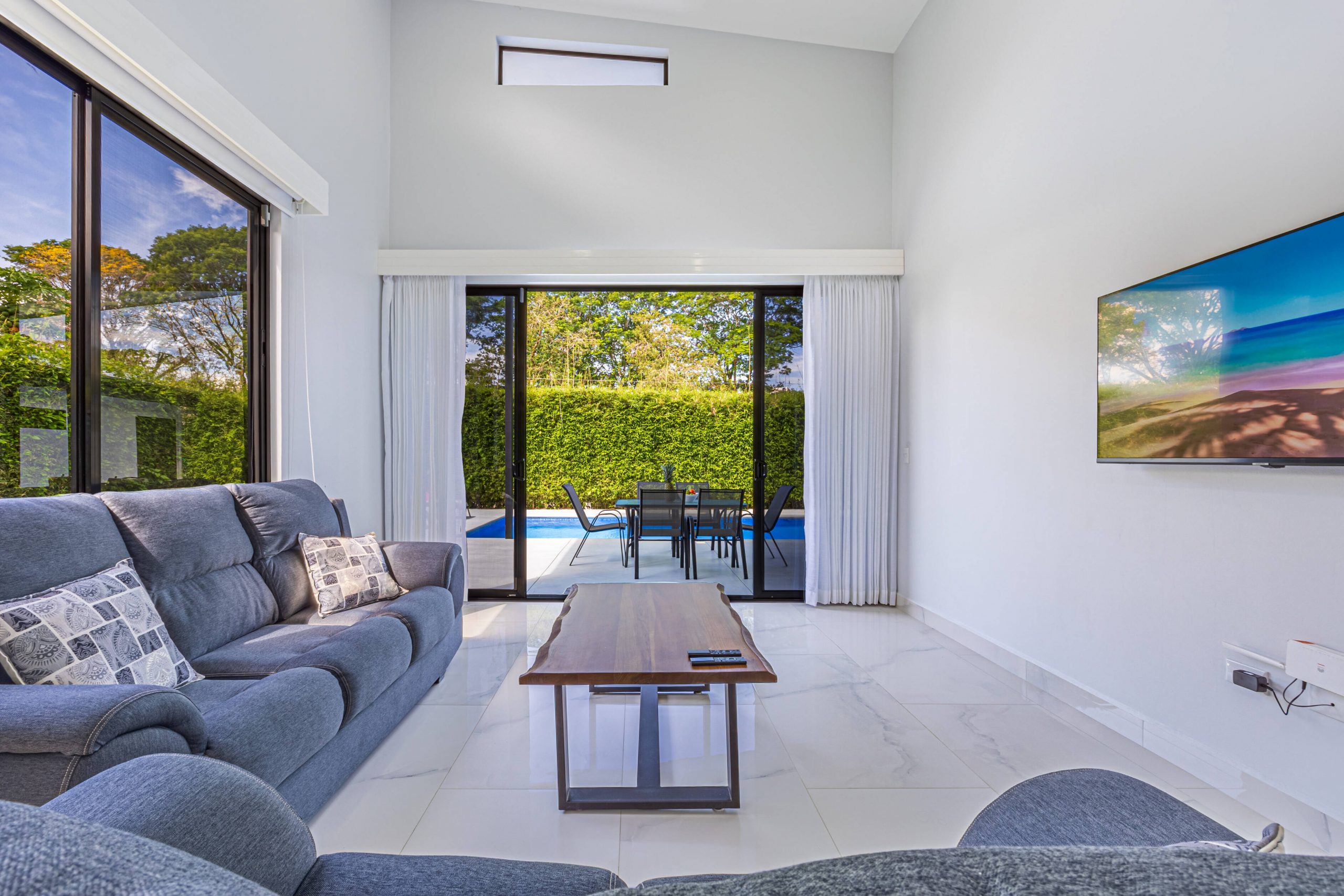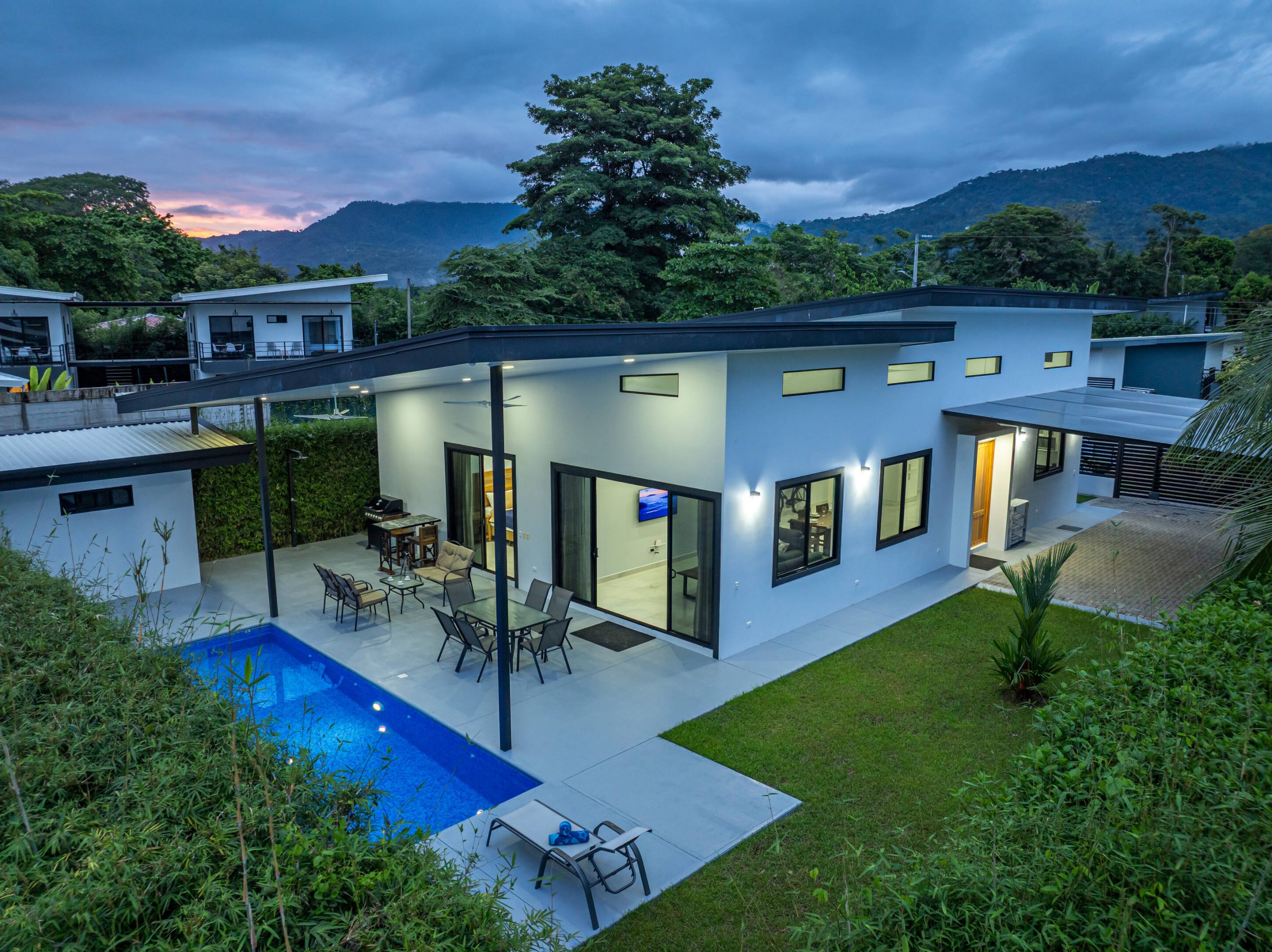 No 4x4 needed, close to restaurants and shops! Sunset Villa offers the perfect blend of comfort, privacy and location. This stylish 3-bedroom, 3-bath home sits just 4 minutes from Marino Ballena National Park and Uvita's most beautiful beaches, yet feels like a peaceful retreat. The villa features a private pool, high ceilings, spacious kitchen and living room, and a modern open-concept design. Each bedroom has A/C and a Smart TV, as does the living room. You'll enjoy a fully equipped kitchen, fast Wi-Fi, and a cozy outdoor space with seating and garden views—perfect for your morning coffee or sunset cocktails.