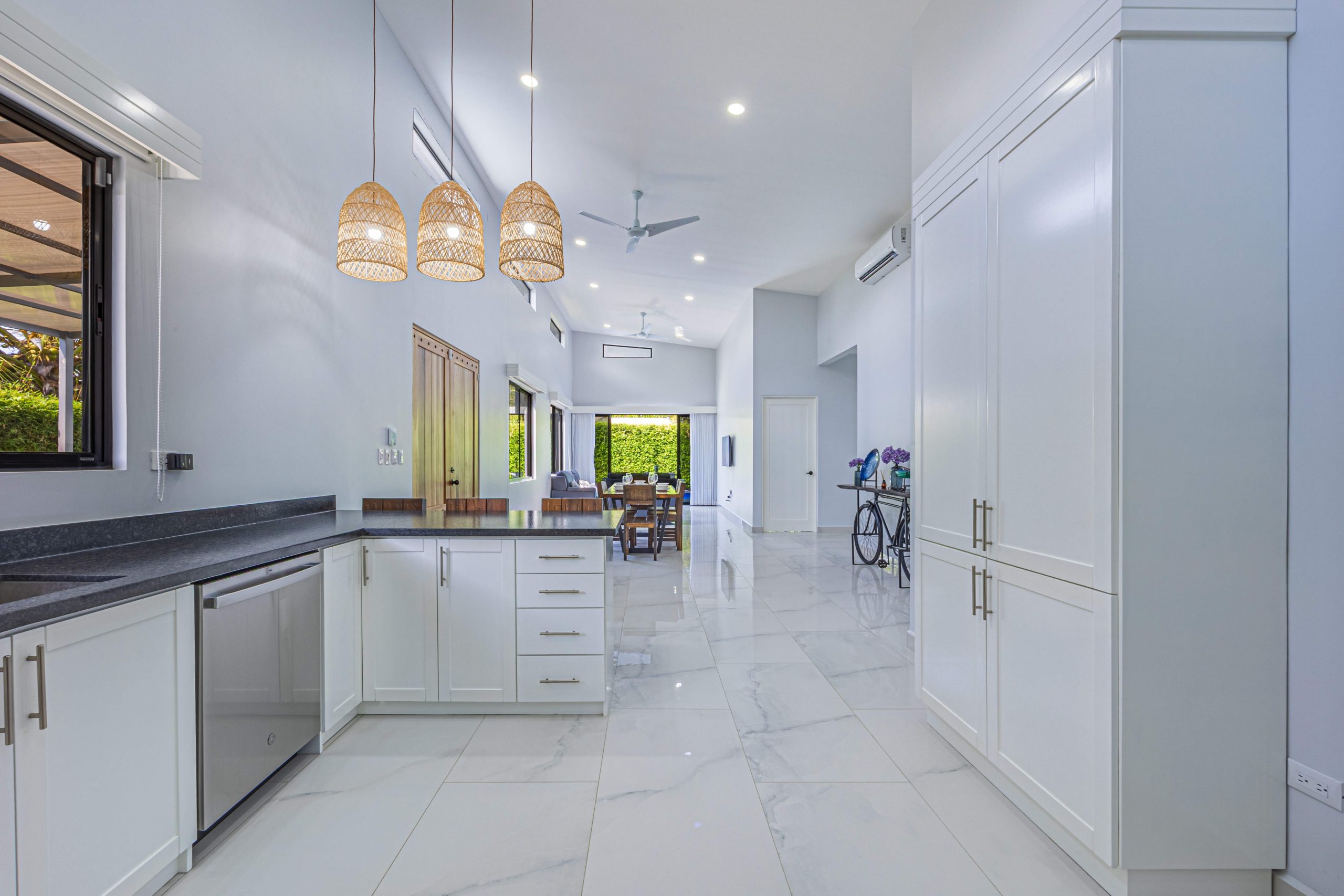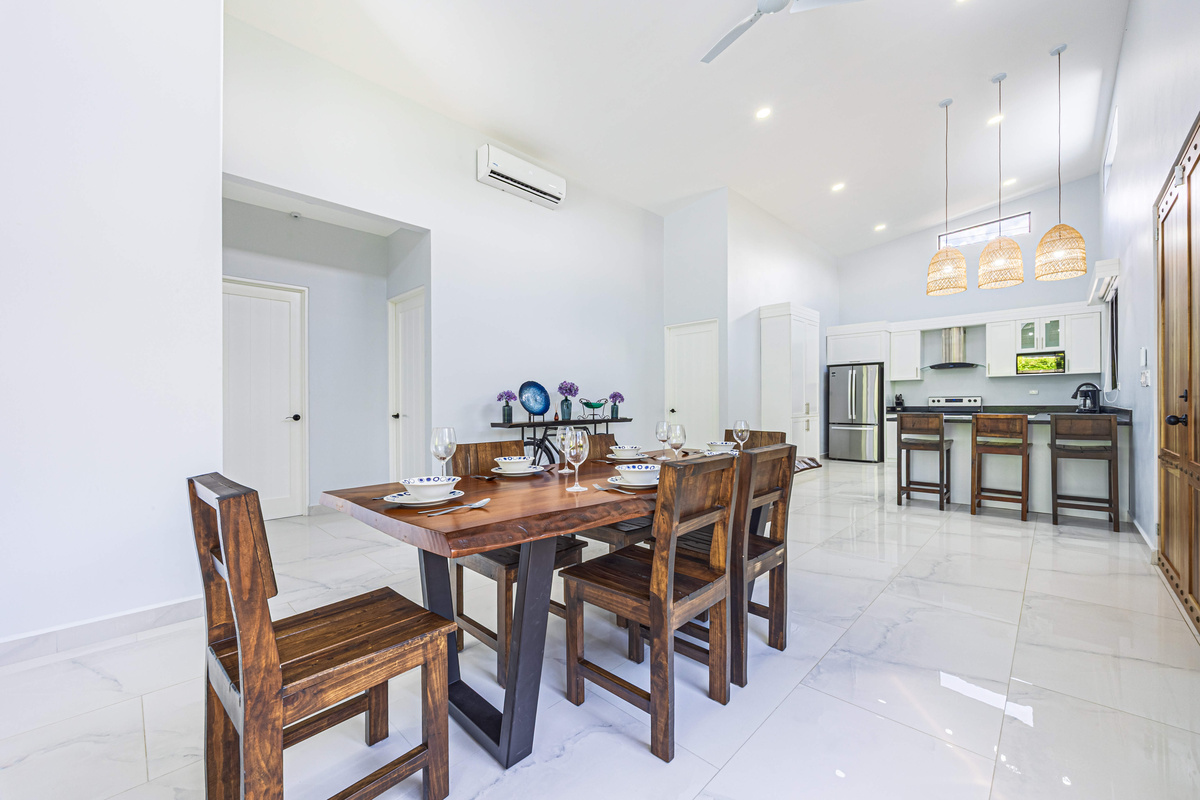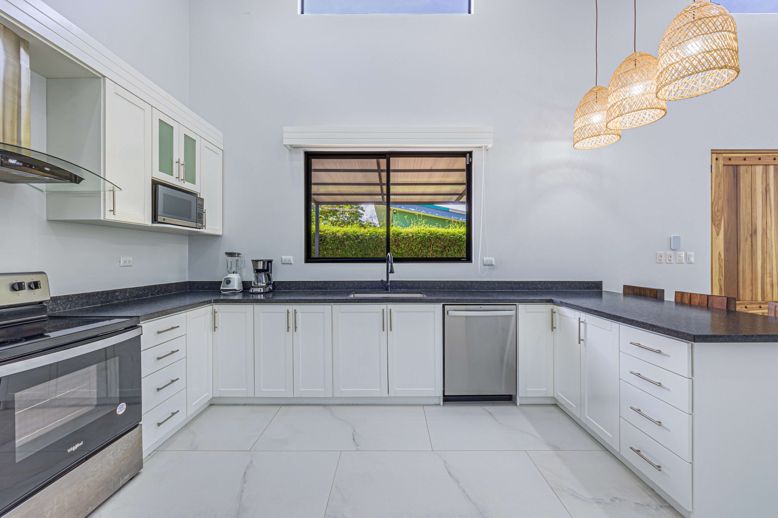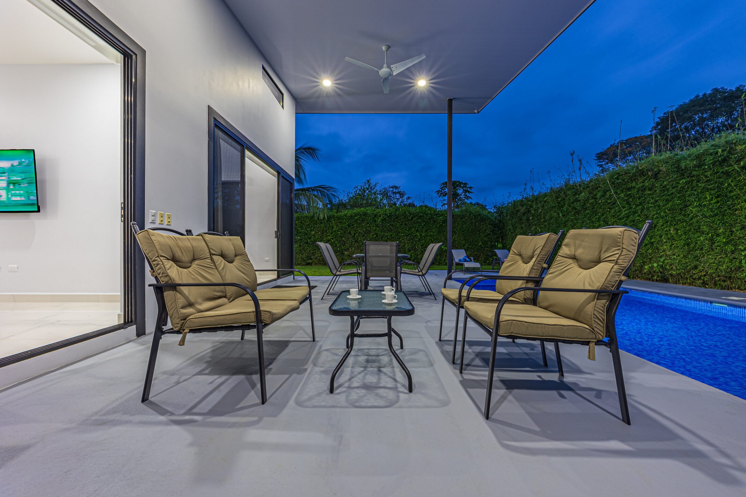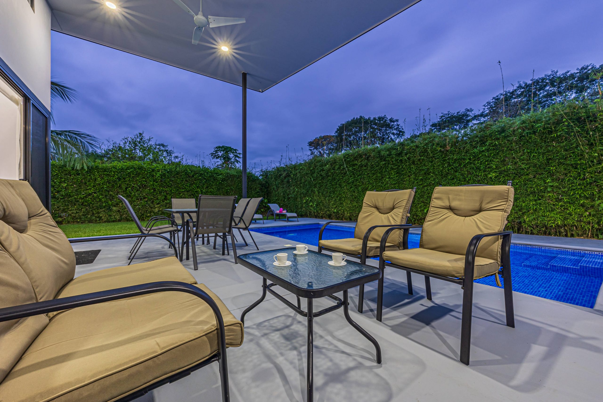 No 4x4 needed, close to restaurants and shops! Sunset Villa offers the perfect blend of comfort, privacy and location. This stylish 3-bedroom, 3-bath home sits just 4 minutes from Marino Ballena National Park and Uvita's most beautiful beaches, yet feels like a peaceful retreat. The villa features a private pool, high ceilings, spacious kitchen and living room, and a modern open-concept design. Each bedroom has A/C and a Smart TV, as does the living room. You'll enjoy a fully equipped kitchen, fast Wi-Fi, and a cozy outdoor space with seating and garden views—perfect for your morning coffee or sunset cocktails.