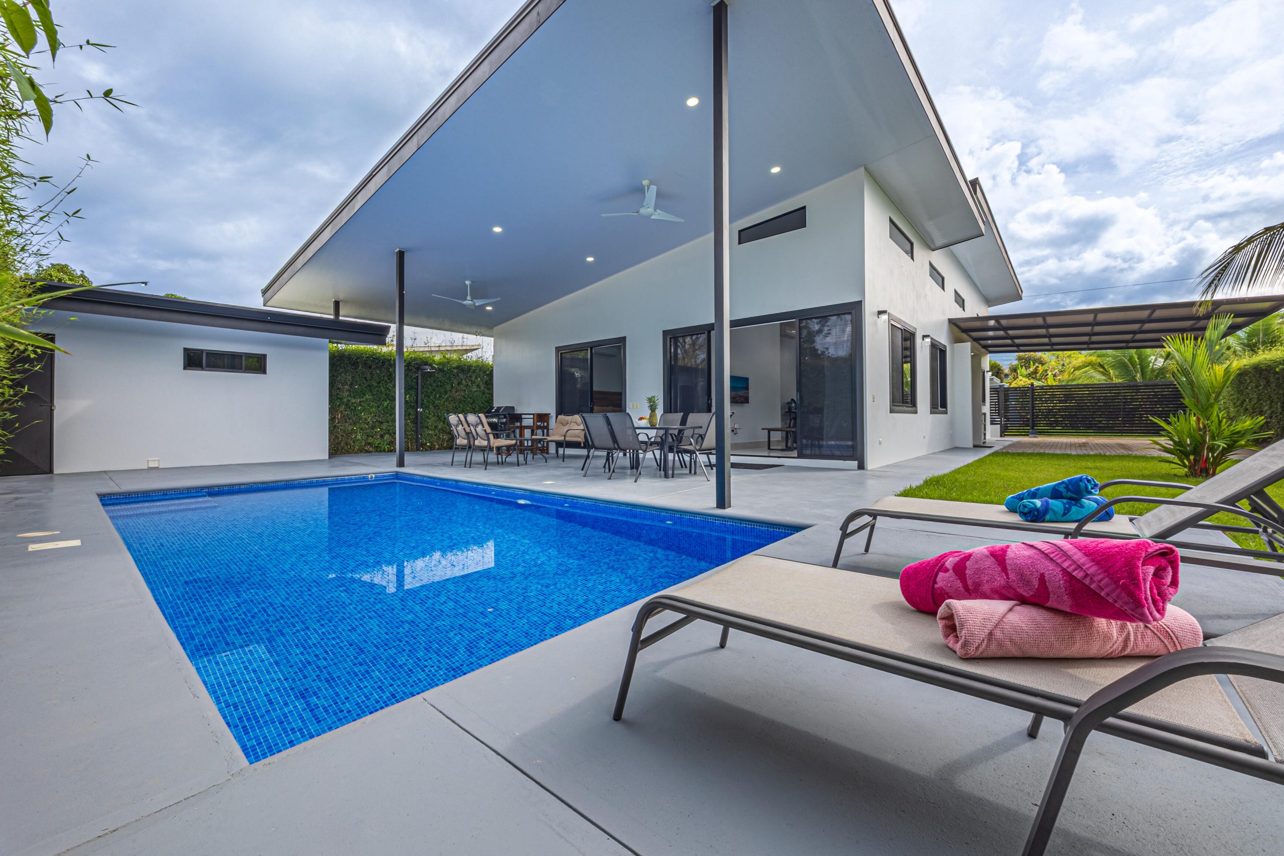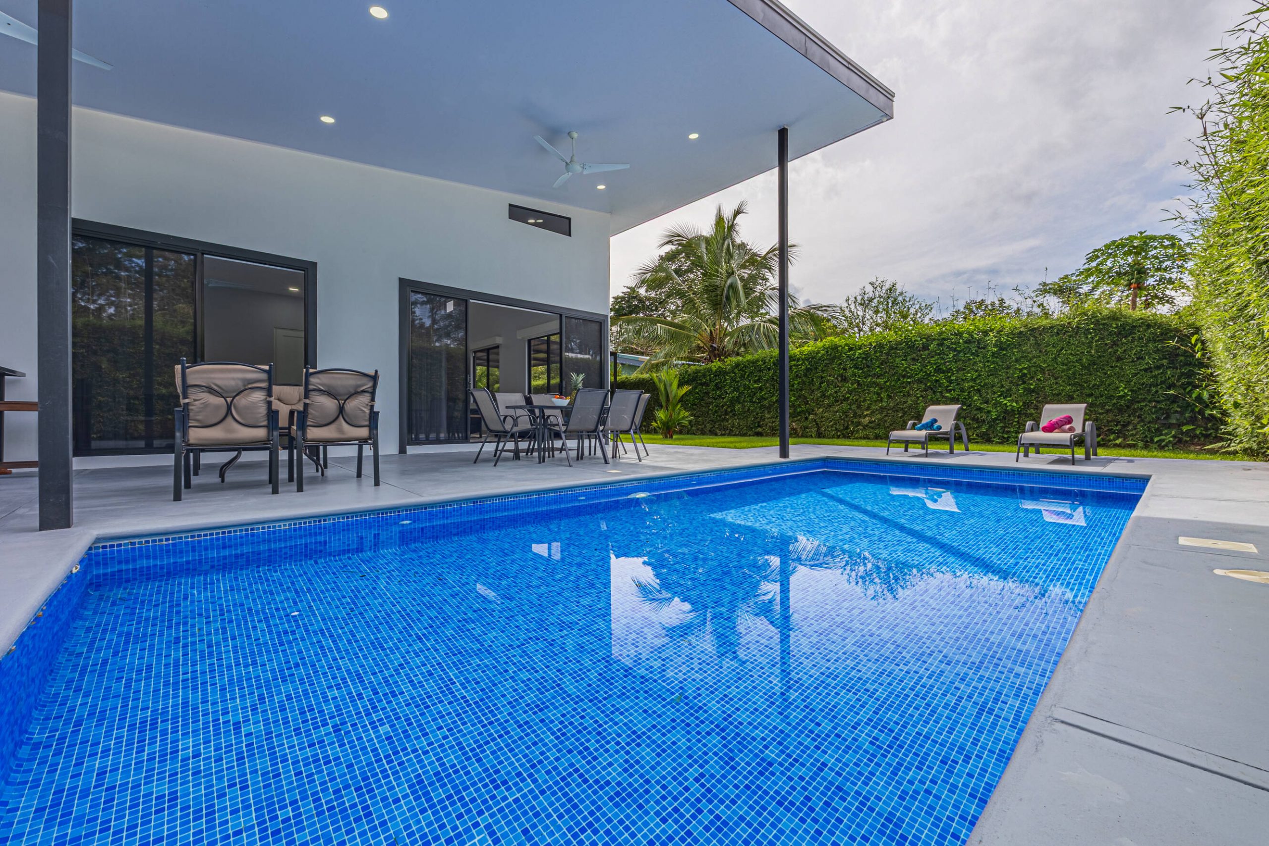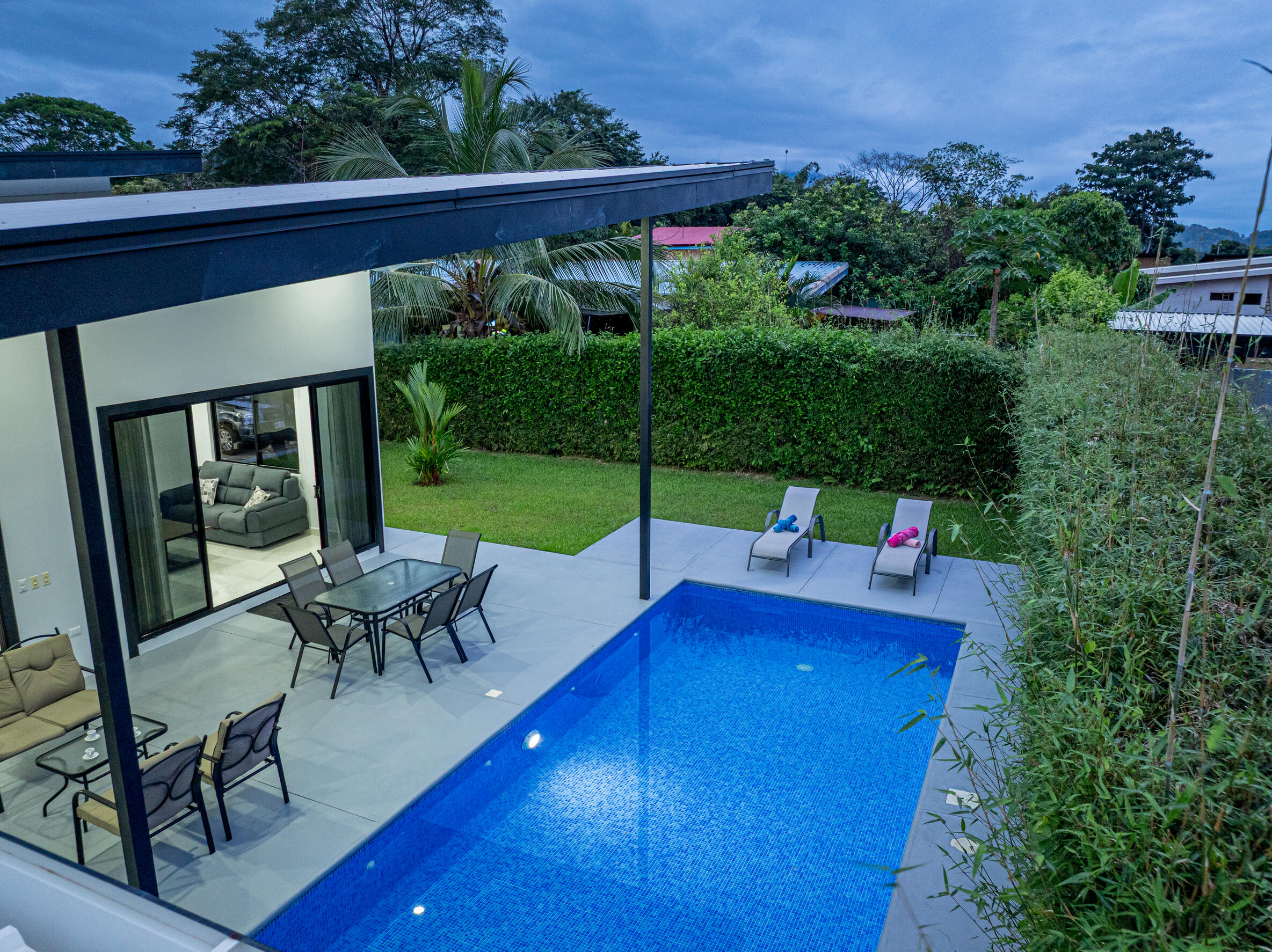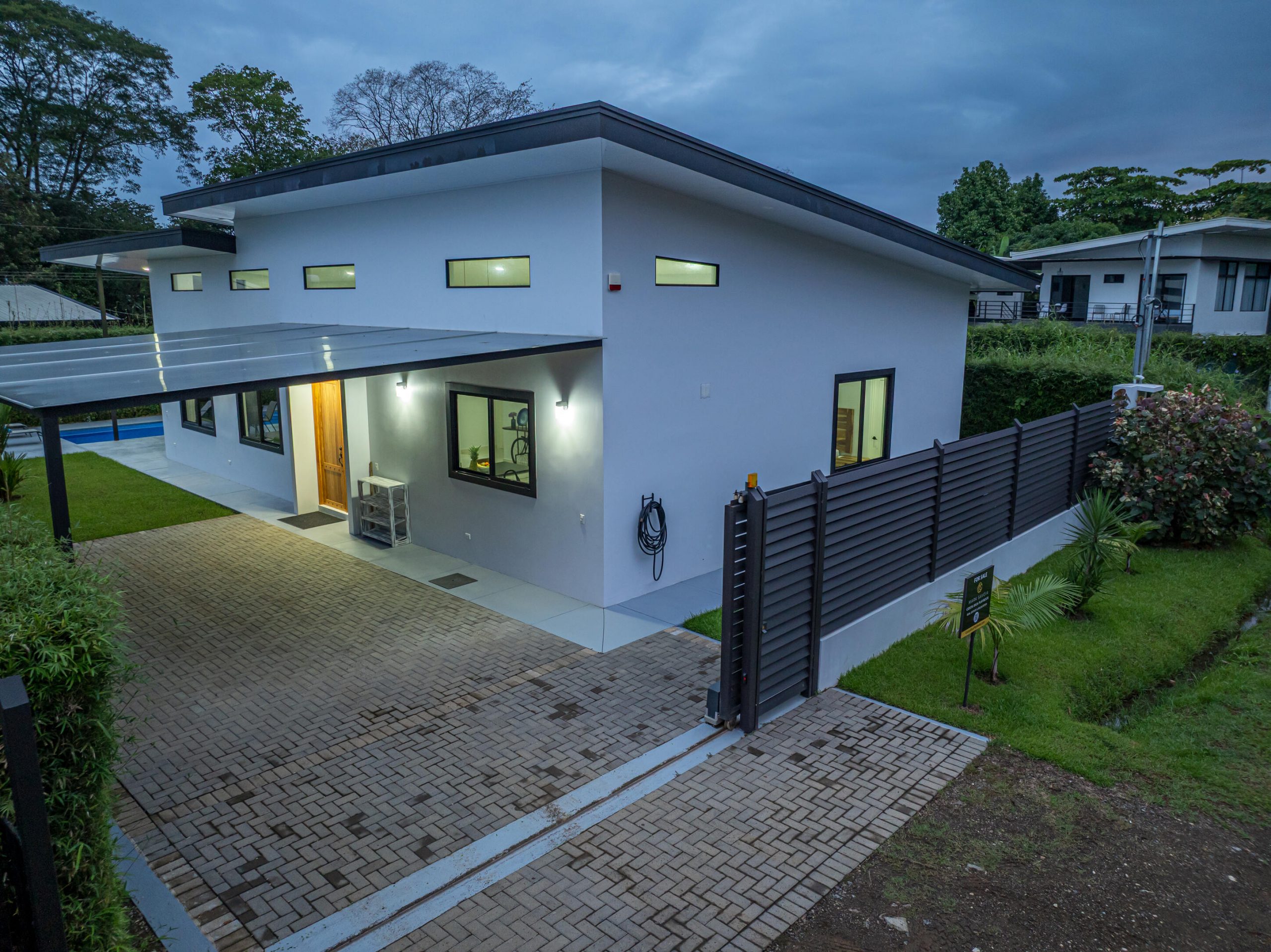 A modern 3-bedroom home with a private pool, spacious garden, and high ceilings, just 4 minutes from Marino Ballena National Park. With A/C and Smart TVs in every room, fast Wi-Fi, full kitchen, and outdoor lounge area, it’s ideal for families, couples, or small groups. Safe area, fully fenced property with gated parking and security perimeter cameras.