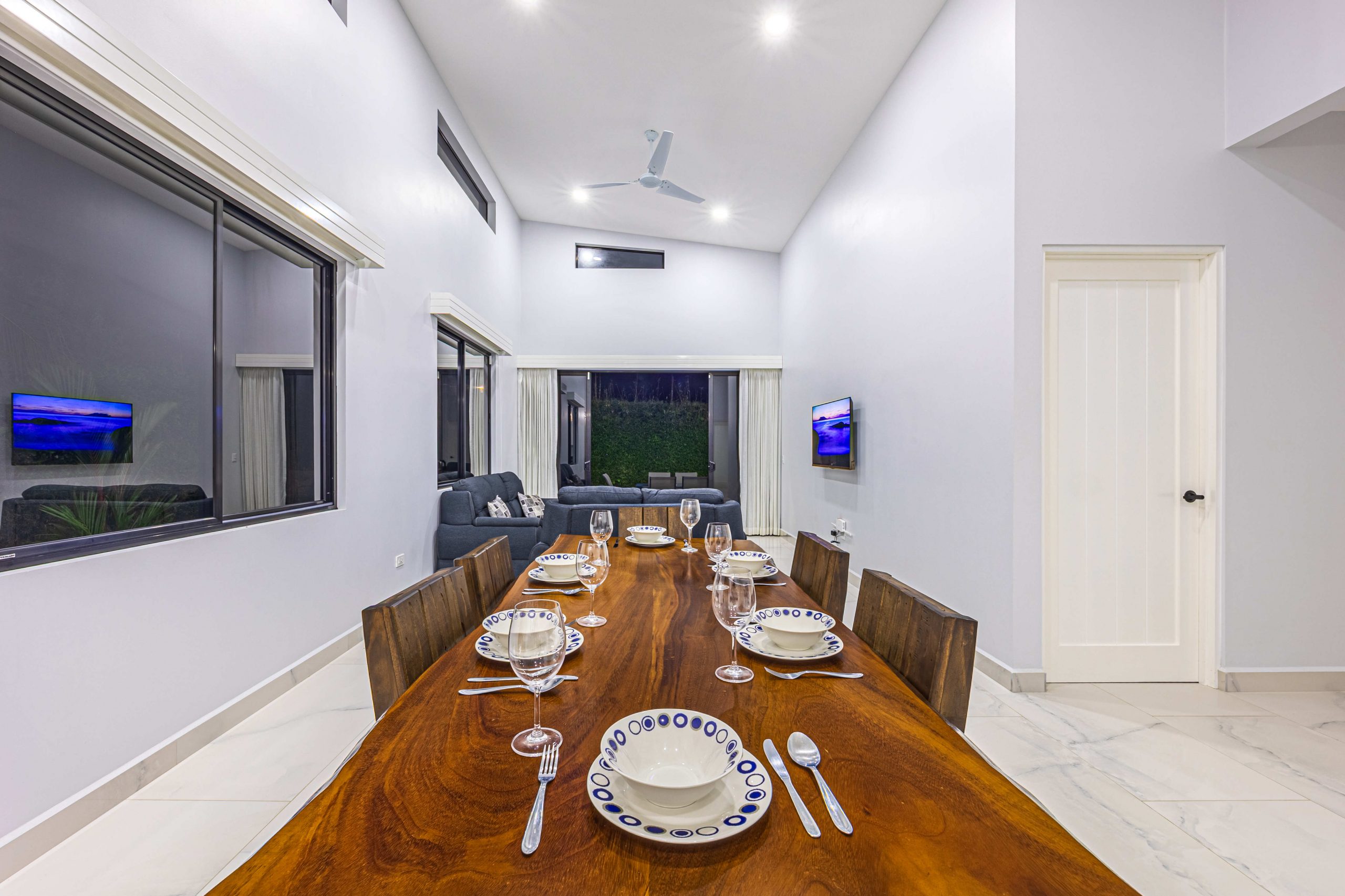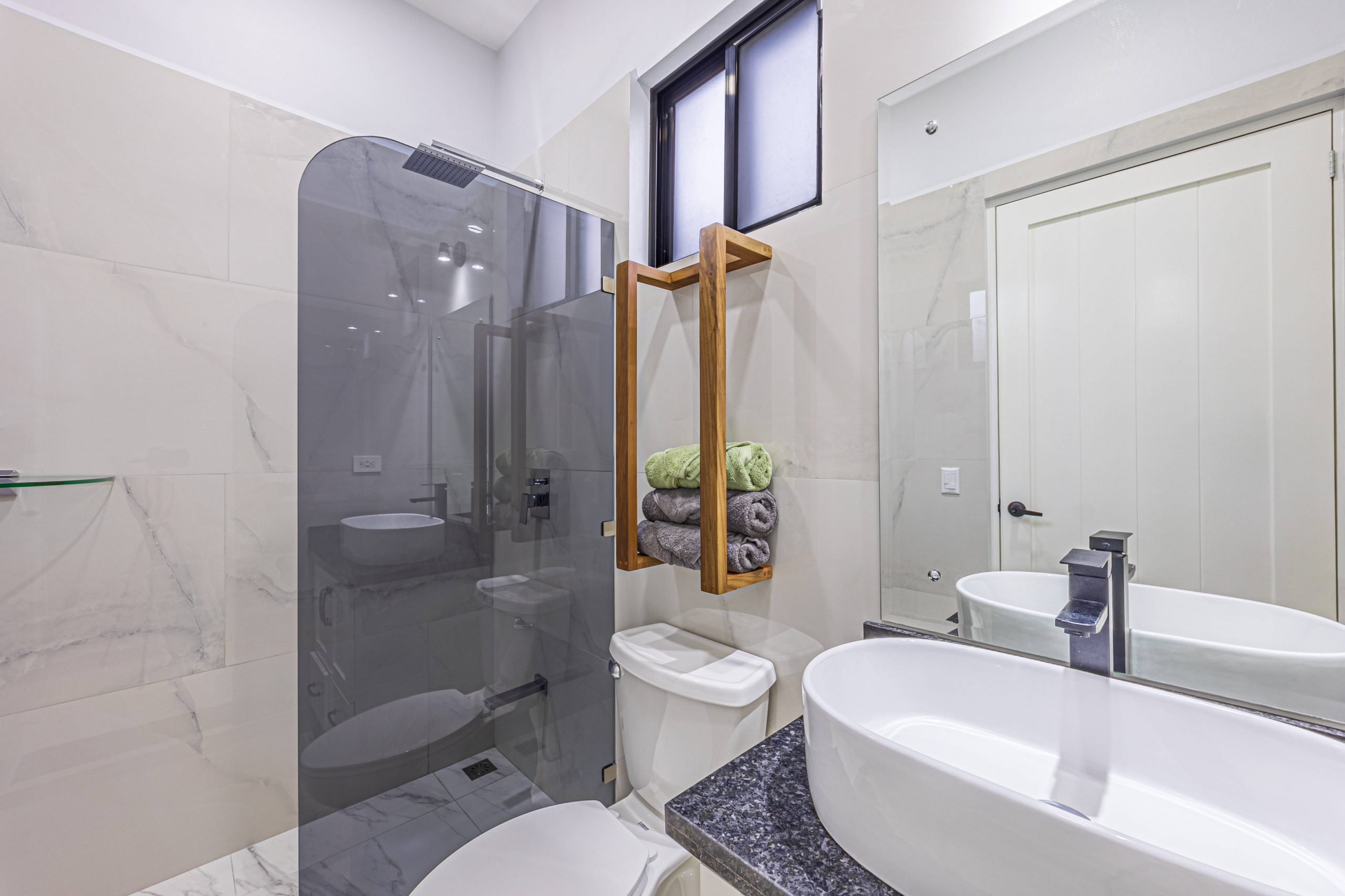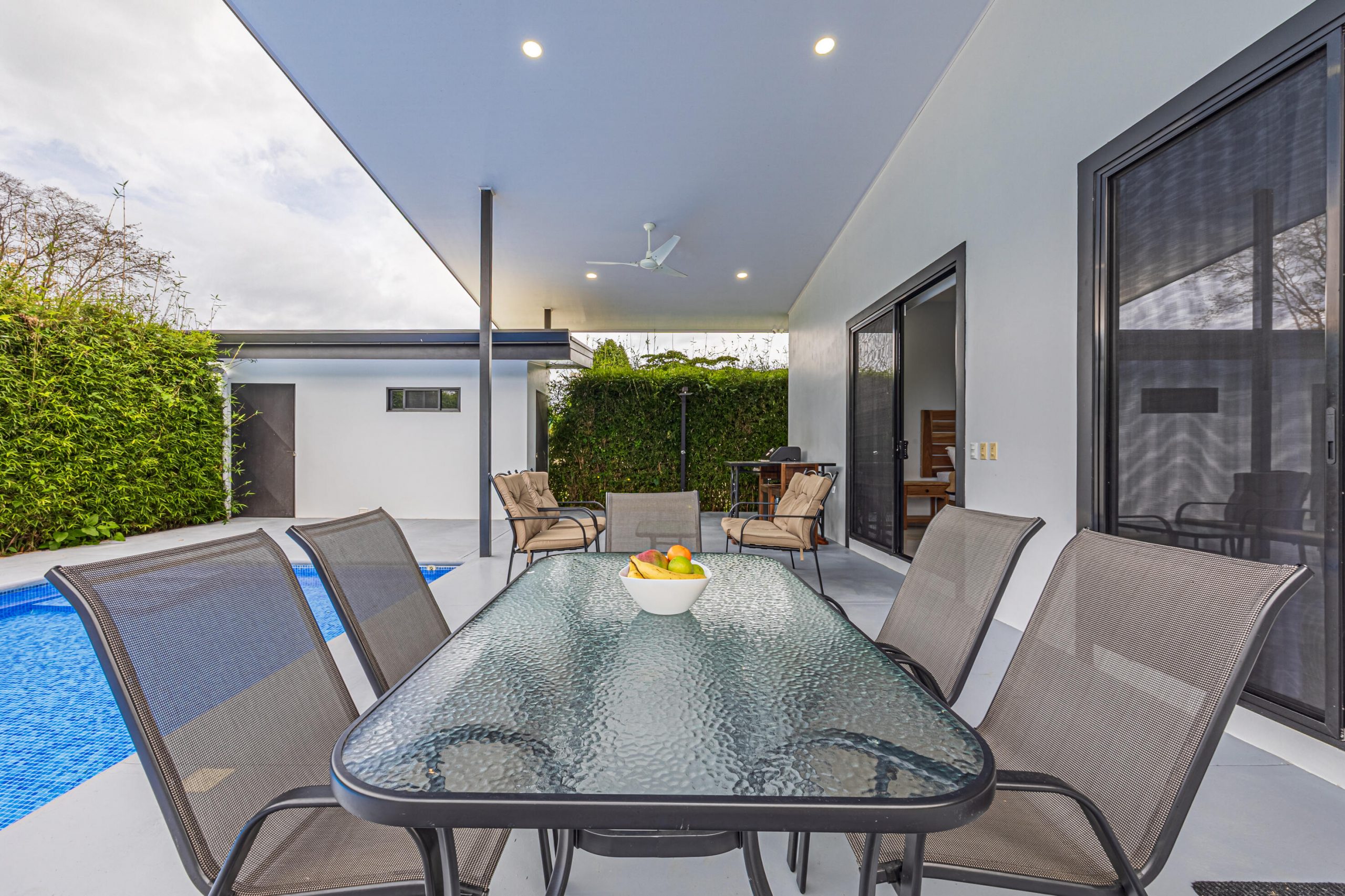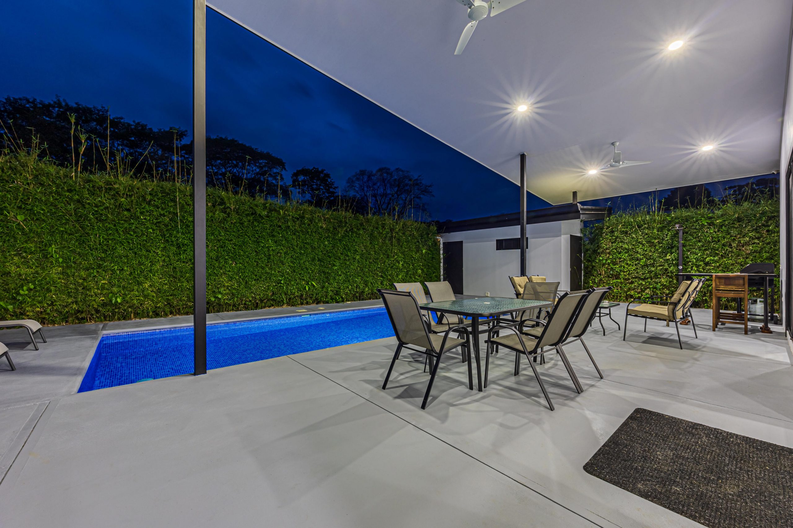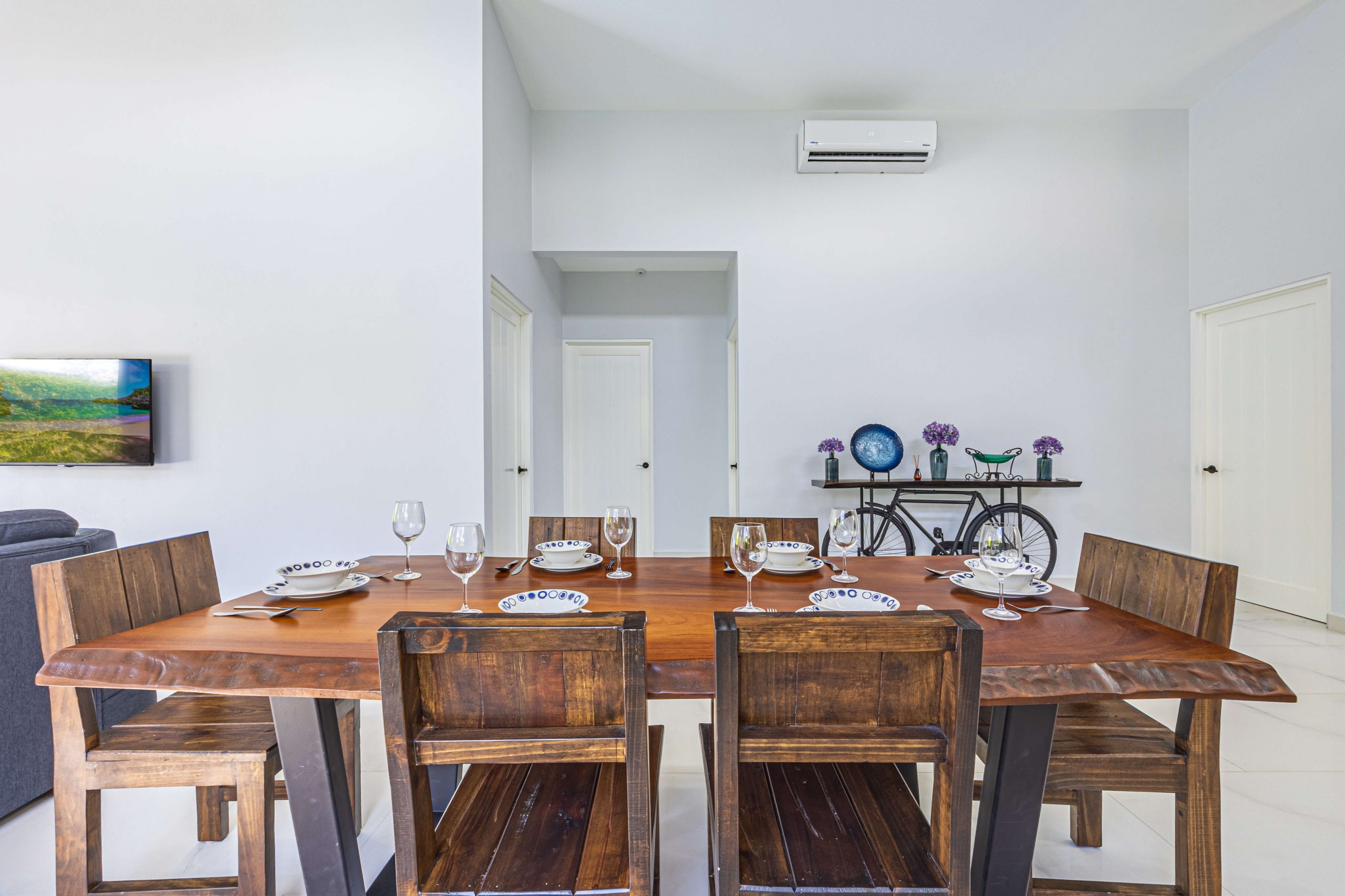 A modern 3-bedroom home with a private pool, spacious garden, and high ceilings, just 4 minutes from Marino Ballena National Park. With A/C and Smart TVs in every room, fast Wi-Fi, full kitchen, and outdoor lounge area, it’s ideal for families, couples, or small groups. Safe area, fully fenced property with gated parking and security perimeter cameras.