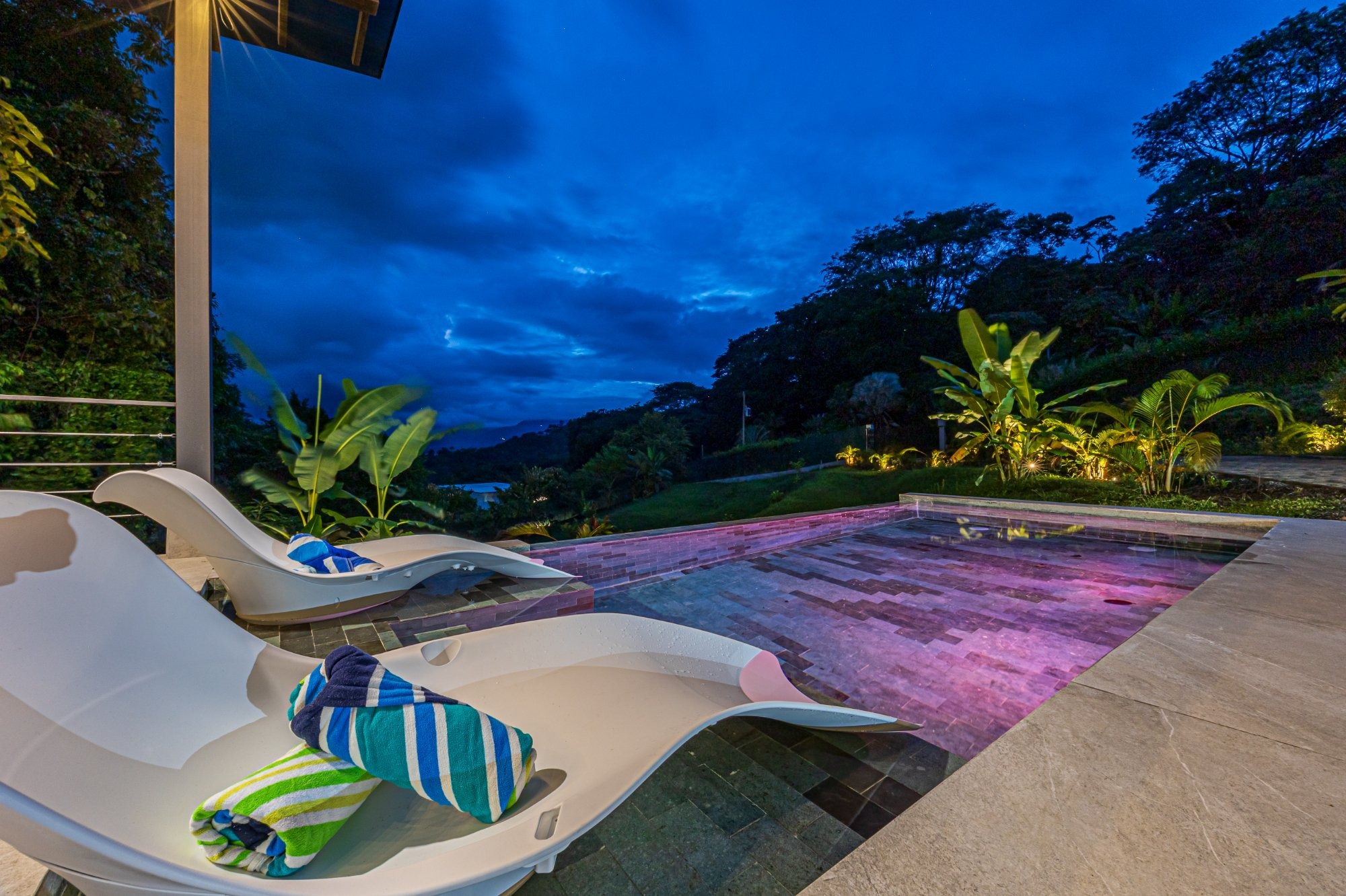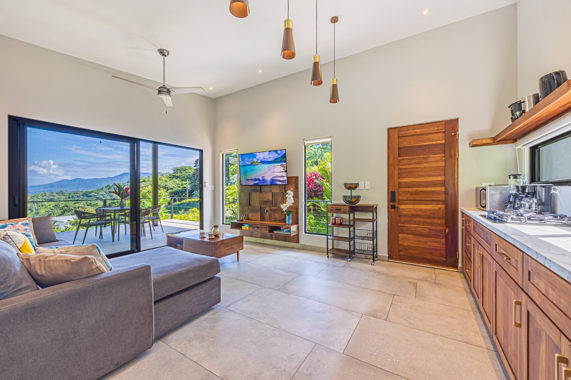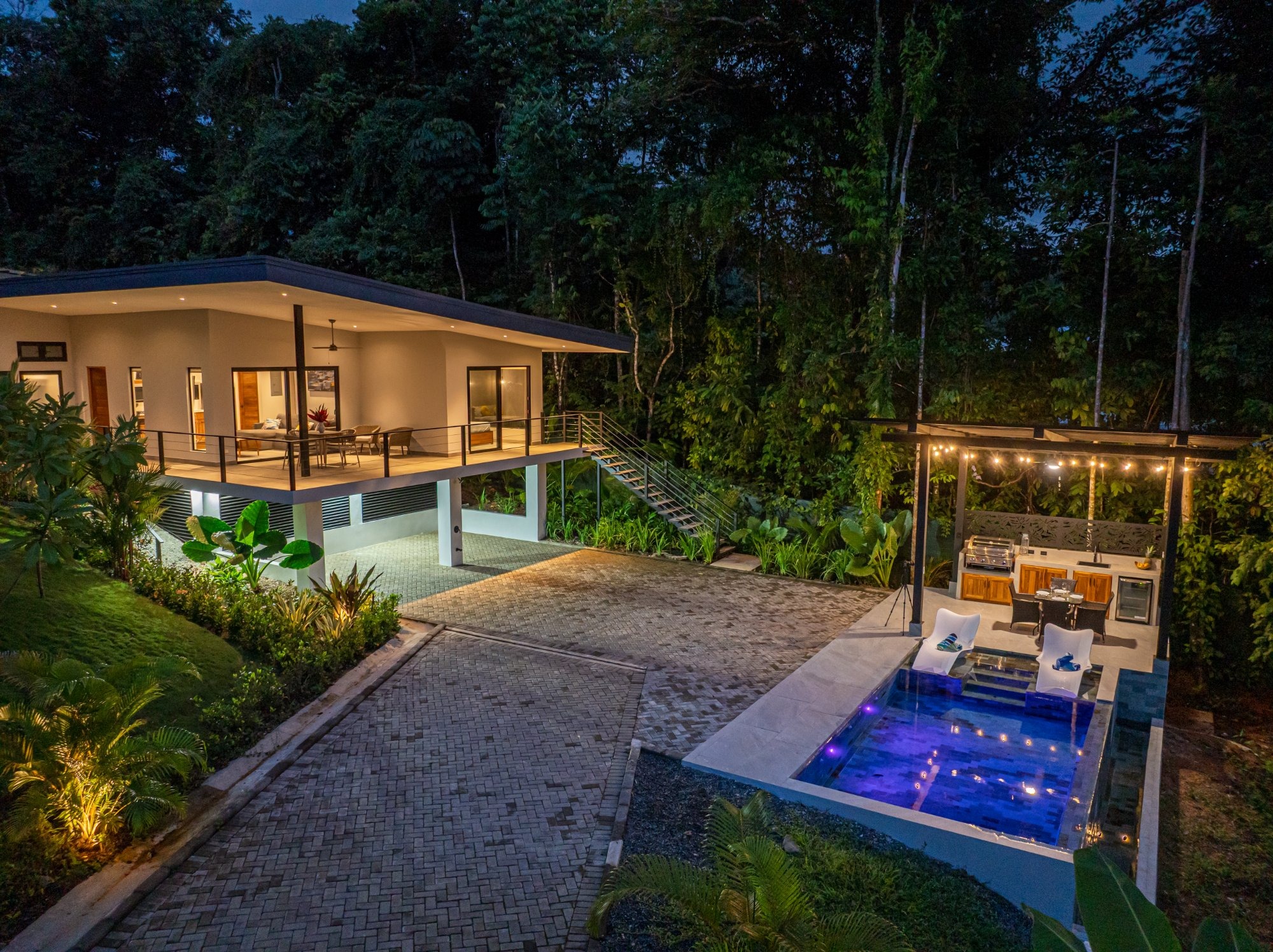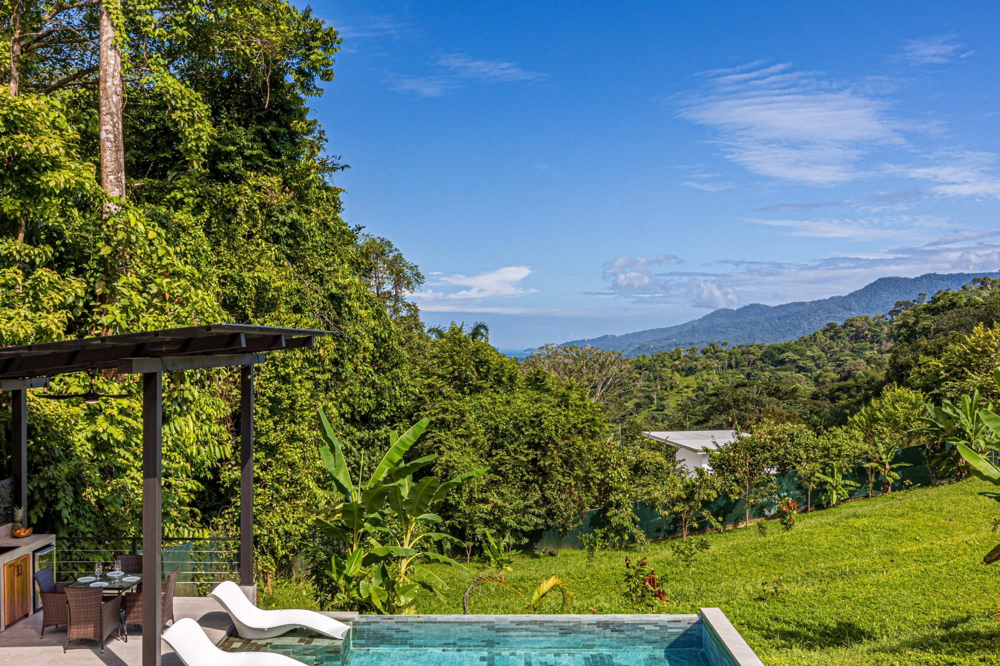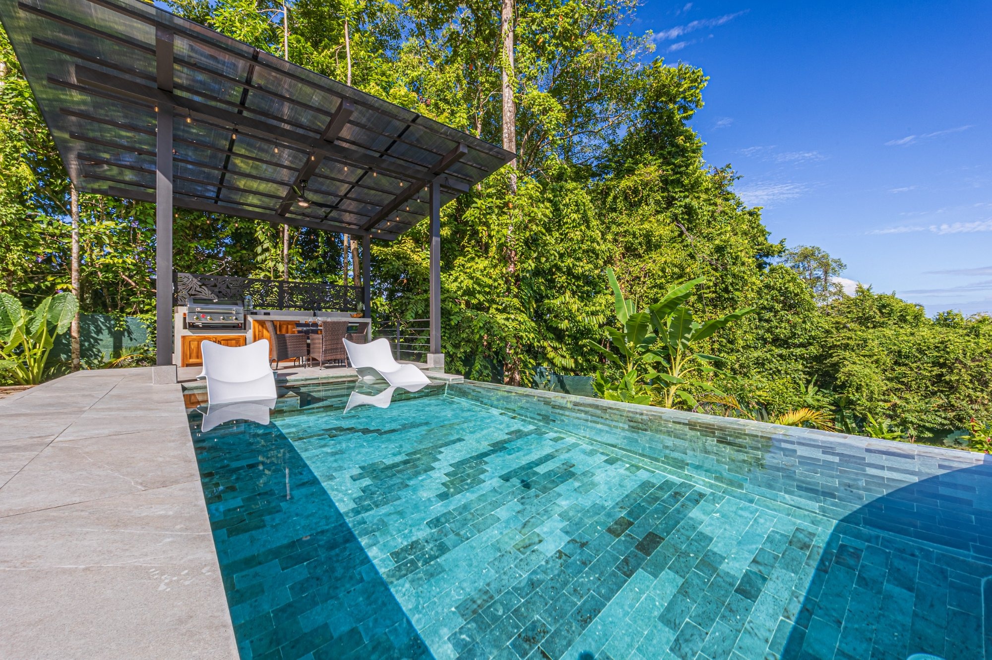 Escape to a modern 2-bedroom villa in Uvita with a stunning sukabumi infinity pool, A/C, WiFi, and covered parking. Just minutes from Playa Colonia and Marino Ballena National Park, enjoy jungle sounds, frequent toucans and occasional monkeys from your terrace with partial ocean views. Perfect for couples, adventurers, or a tropical retreat, privacy, comfort and nature all in one place.