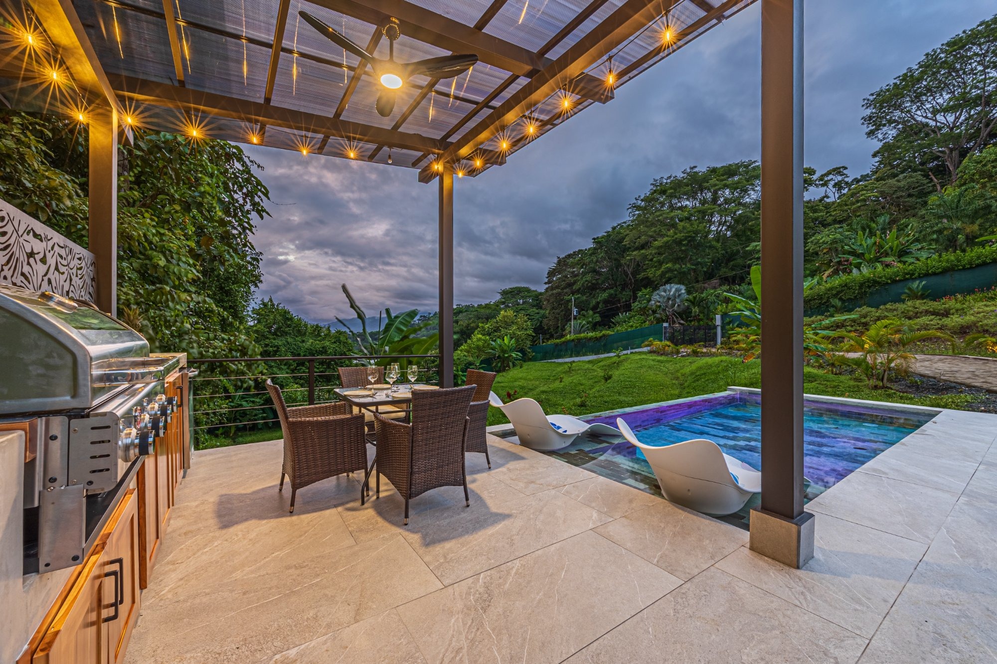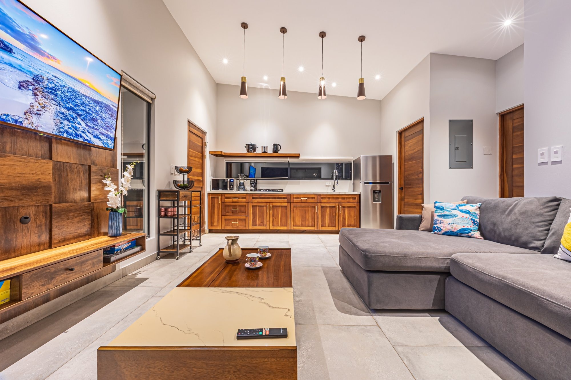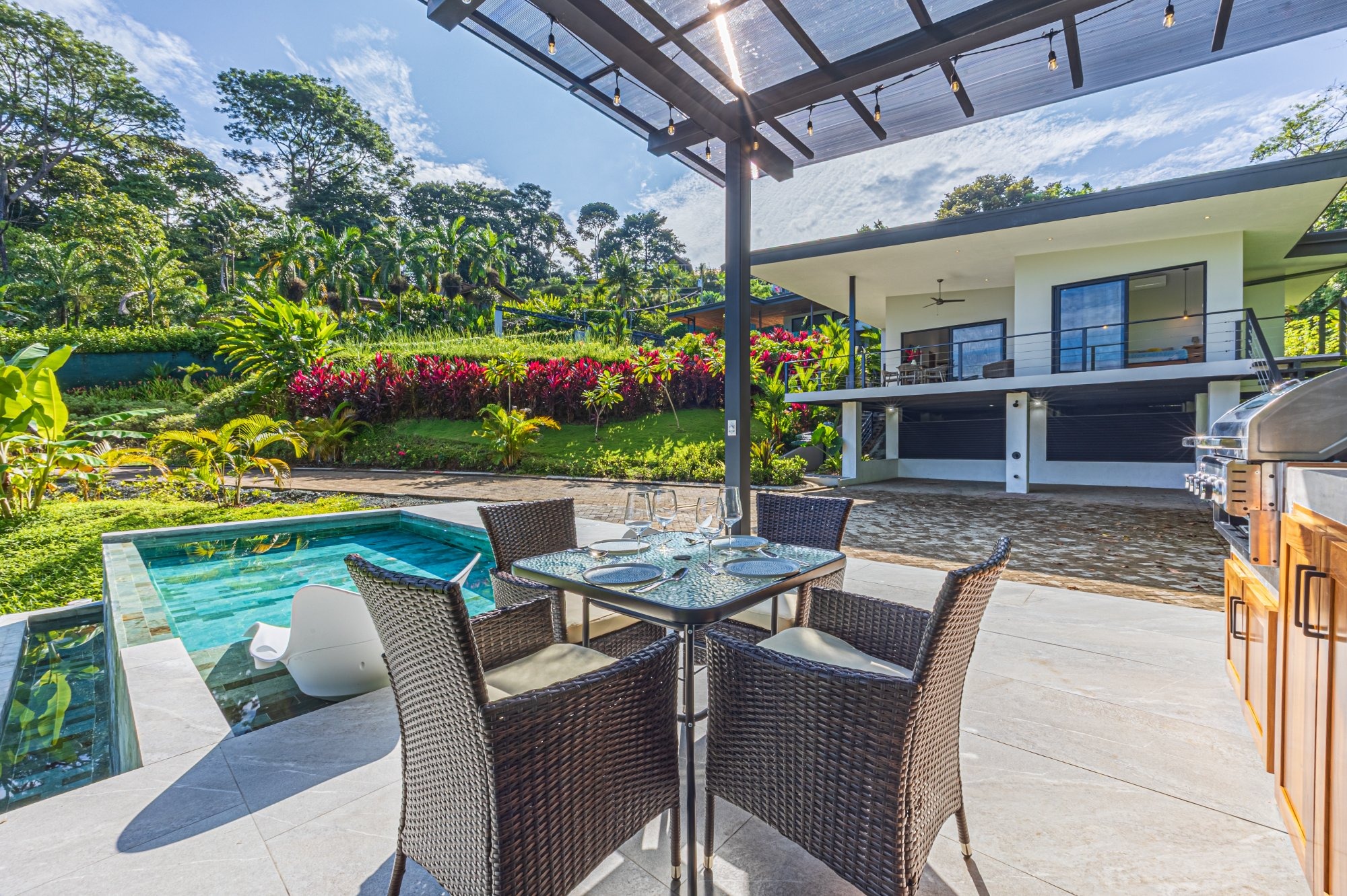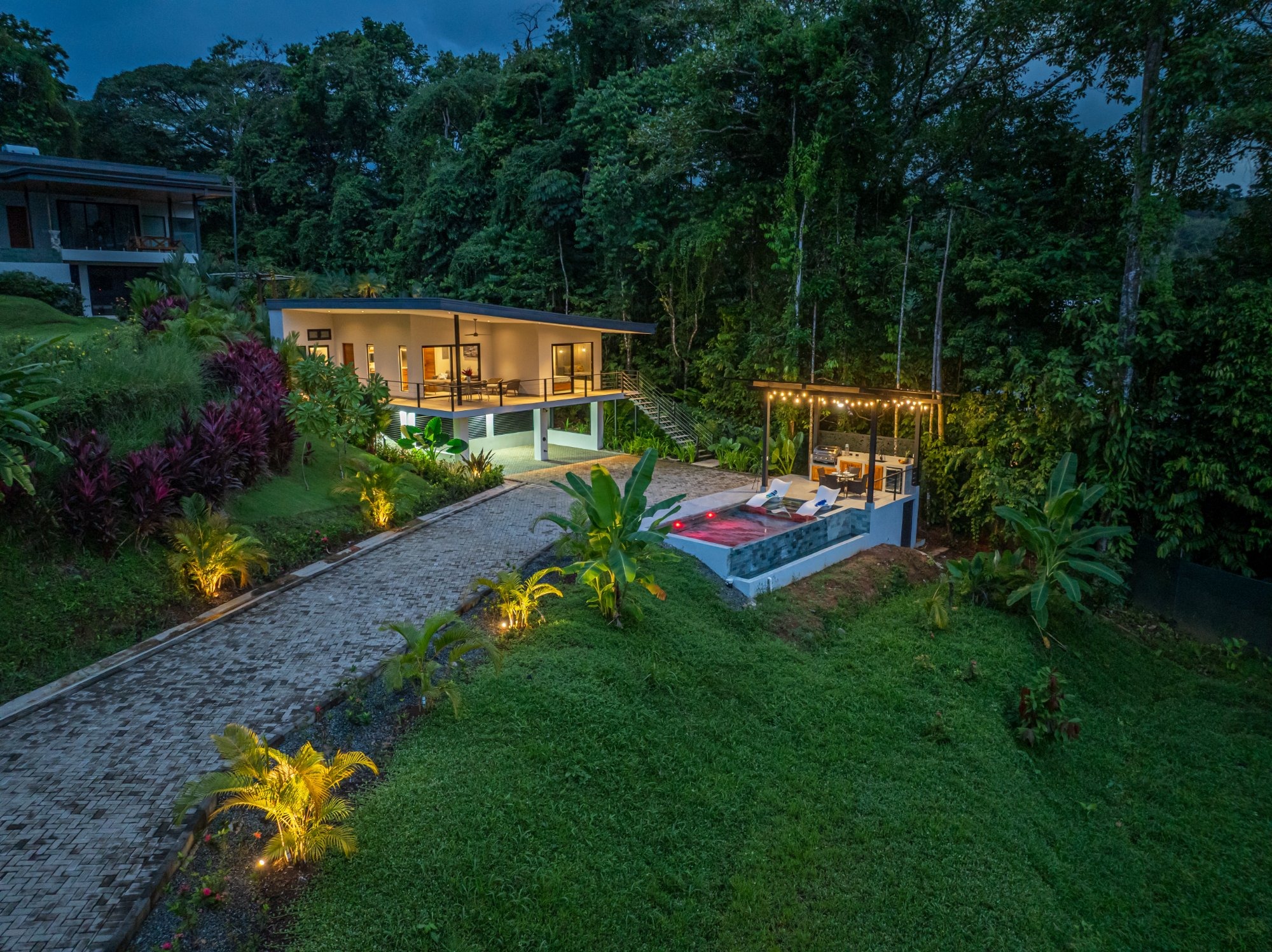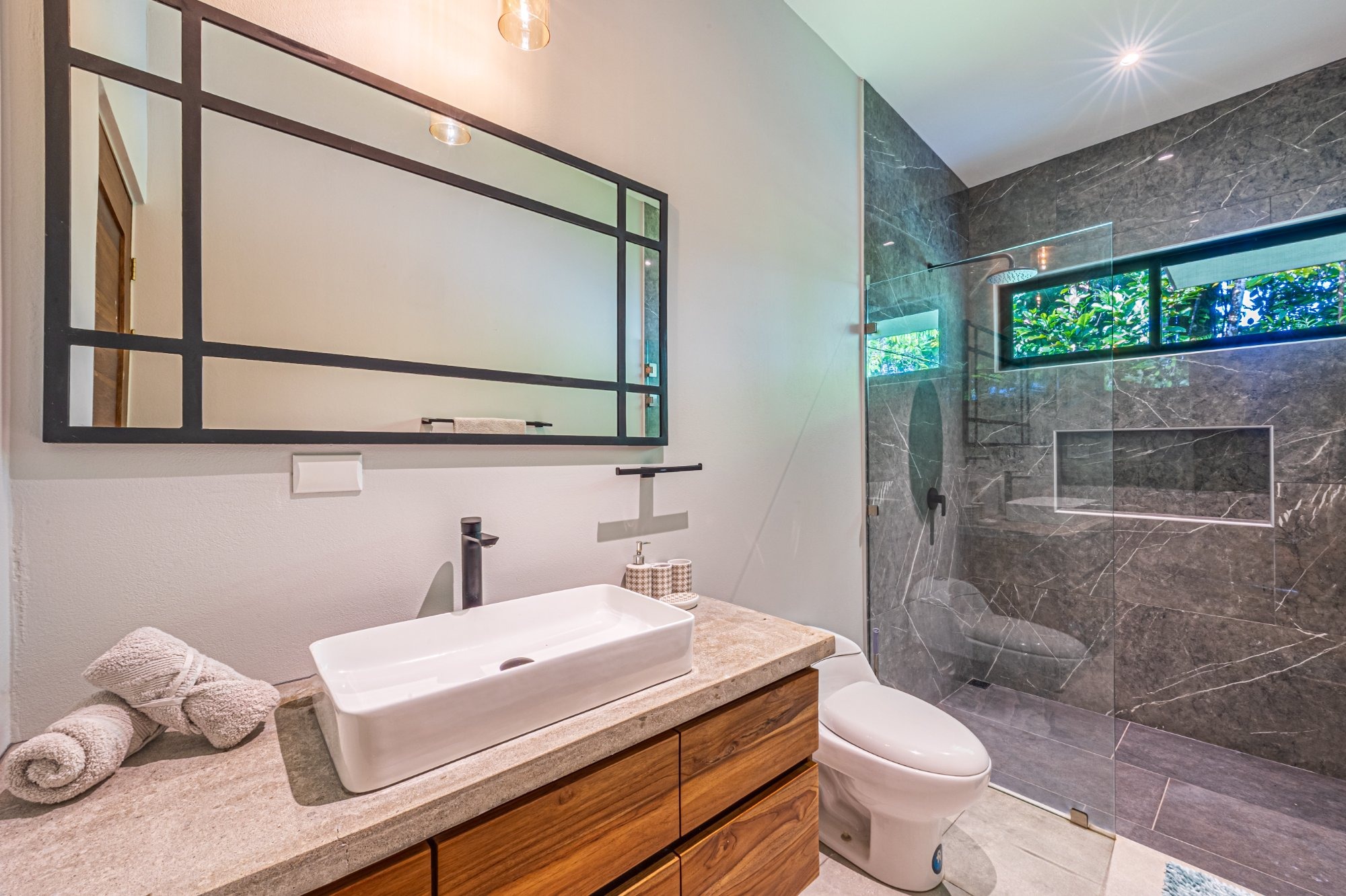 Escape to a modern 2-bedroom villa in Uvita with a stunning sukabumi infinity pool, A/C, WiFi, and covered parking. Just minutes from Playa Colonia and Marino Ballena National Park, enjoy jungle sounds, frequent toucans and occasional monkeys from your terrace with partial ocean views. Perfect for couples, adventurers, or a tropical retreat, privacy, comfort and nature all in one place.