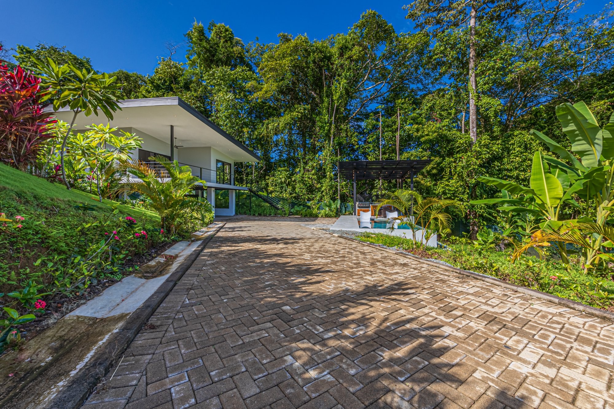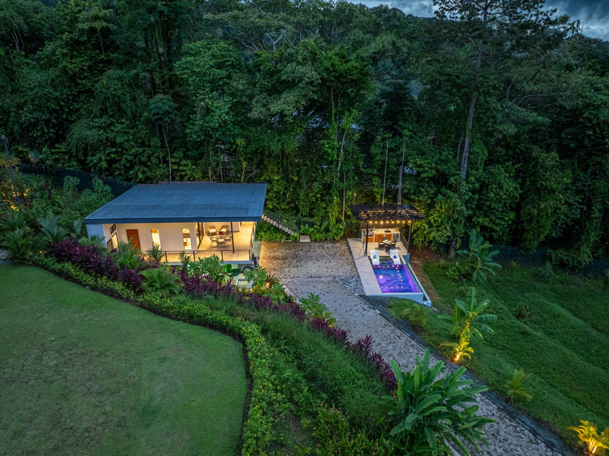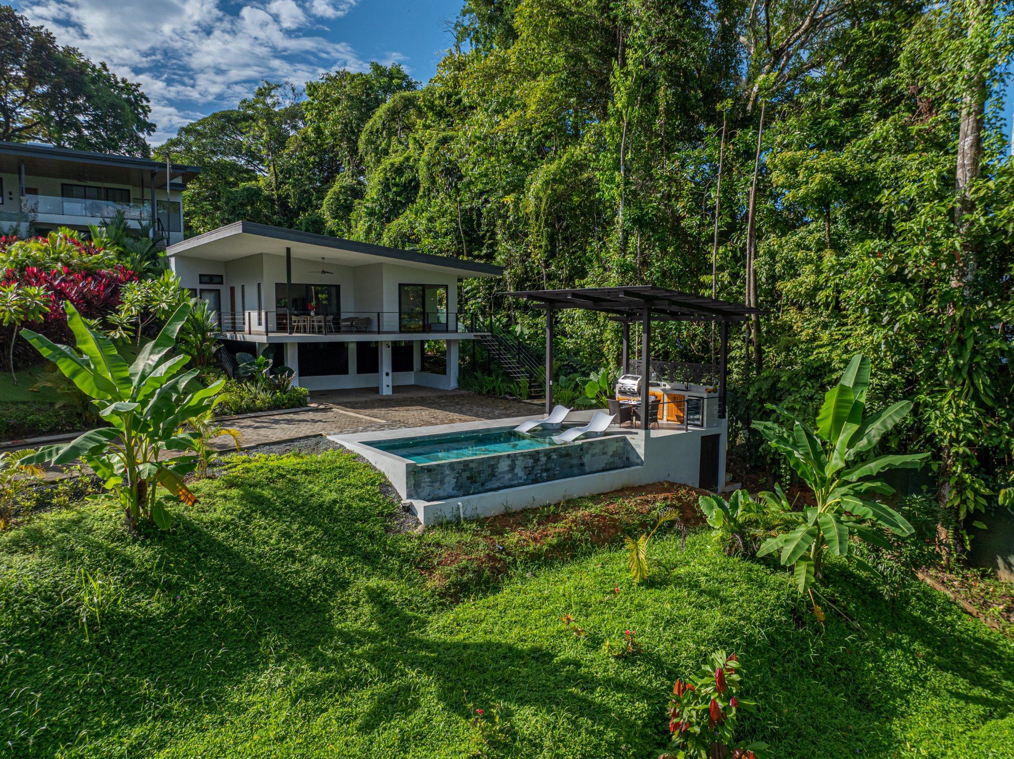 Escape to your tropical retreat in Uvita! This modern 2-bedroom, 1-bath villa blends sleek design with natural beauty. Relax in the sukabumi stone infinity pool, stay cool with A/C in every room, and enjoy fast WiFi for work or leisure. The private terrace offers partial ocean views, while the jungle surroundings provide frequent encounters with toucans, exotic birds, and occasionally playful monkeys. Located just minutes from Playa Colonia and Marino Ballena National Park, this villa is perfect for beach days, whale watching, or jungle adventures. Covered parking for two vehicles adds convenience, and the modern, stylish design makes it ideal for couples, adventurers, or anyone seeking a tropical retreat with privacy and comfort.